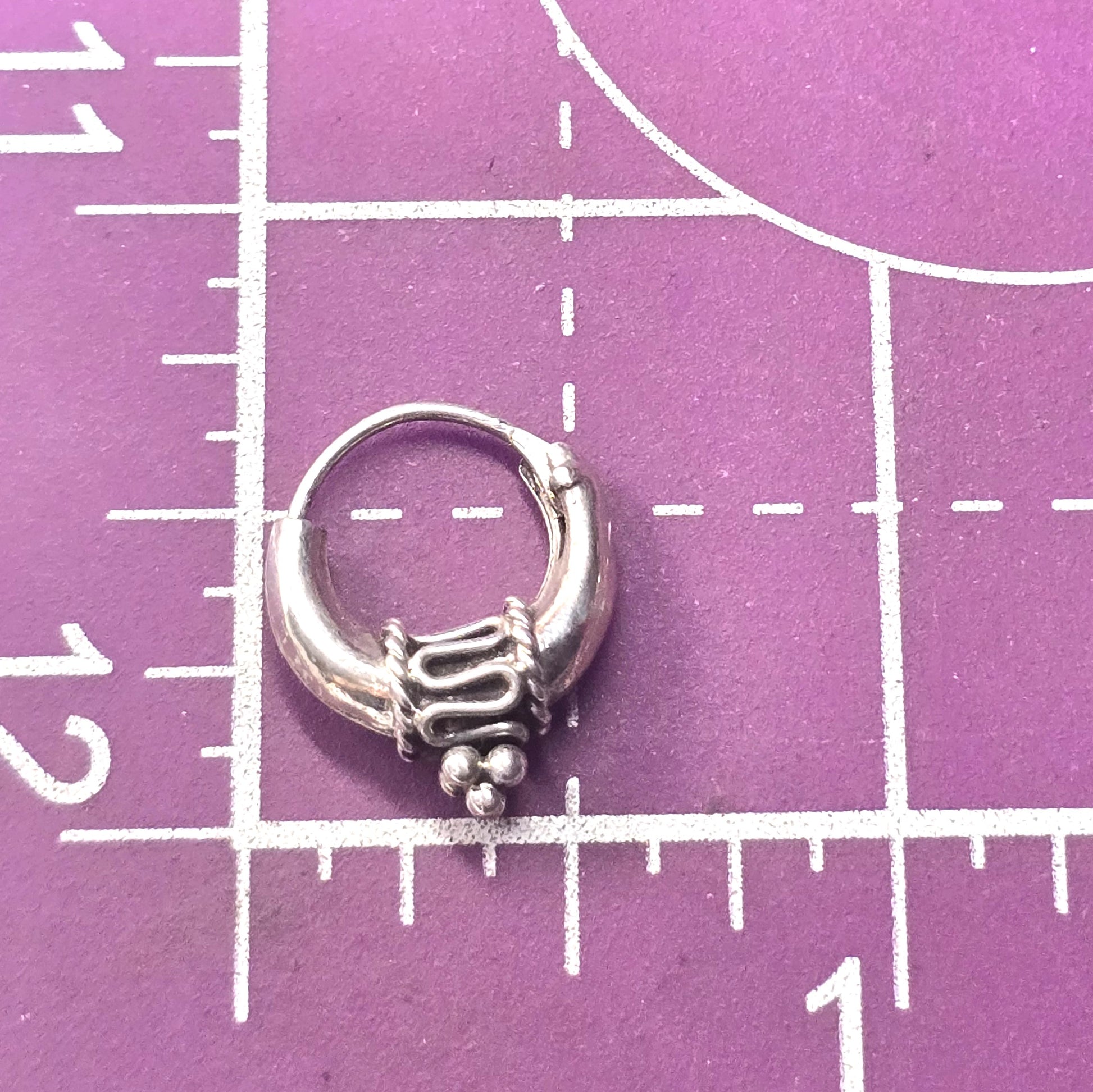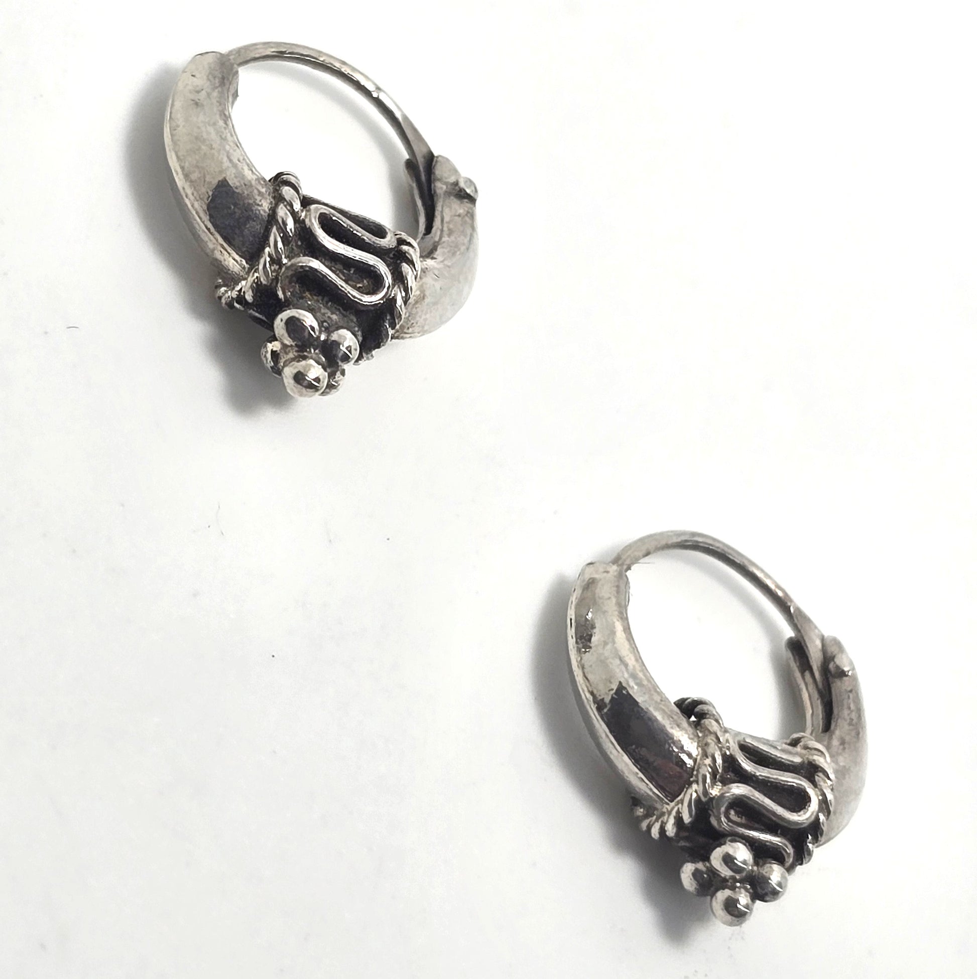 Retro Tribal Bali puffy internal threaded sterling silver small hoop earrings