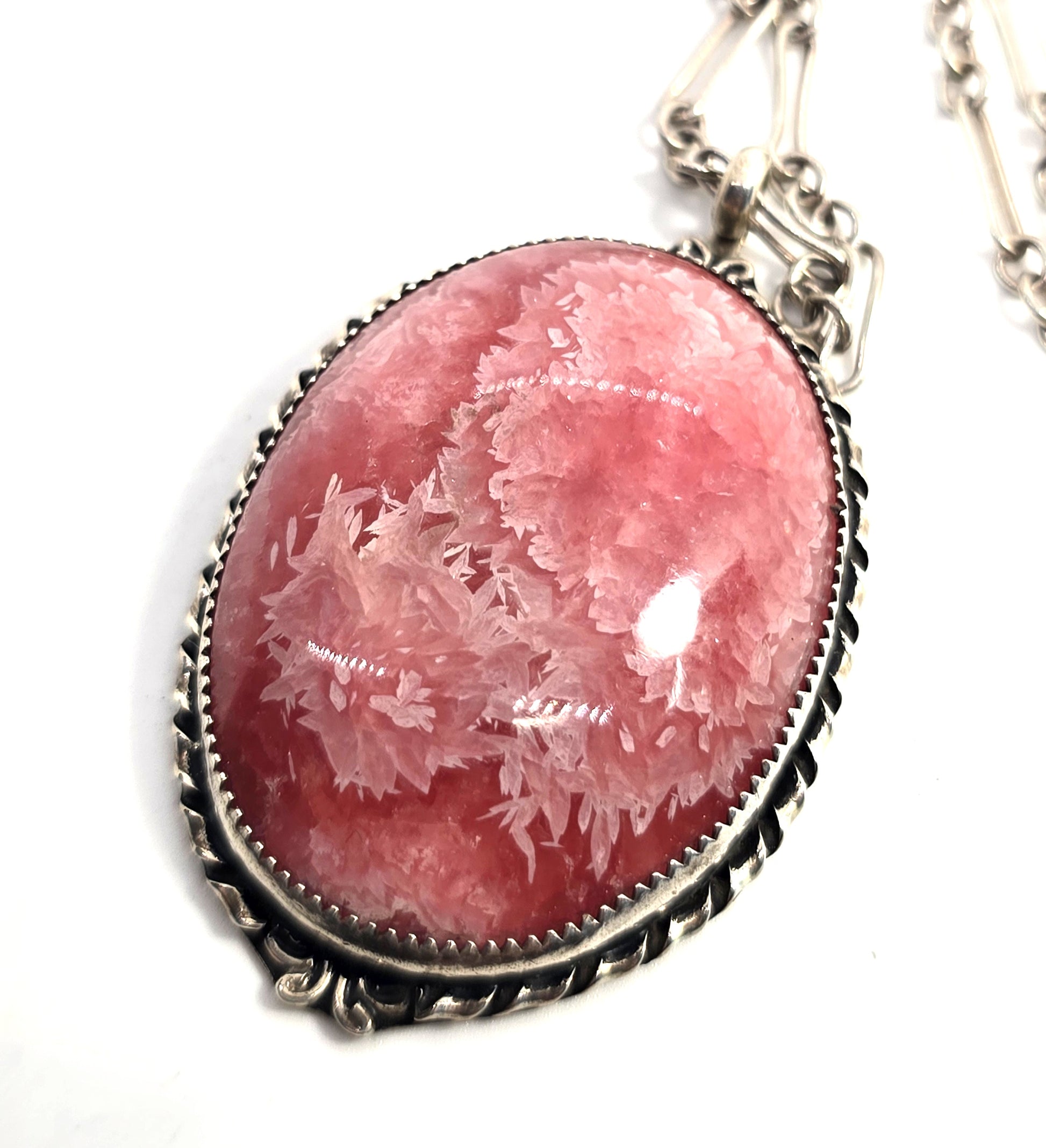 Rhodochrosite Large pink gemstone vintage handcrafted sterling silver 24' necklace