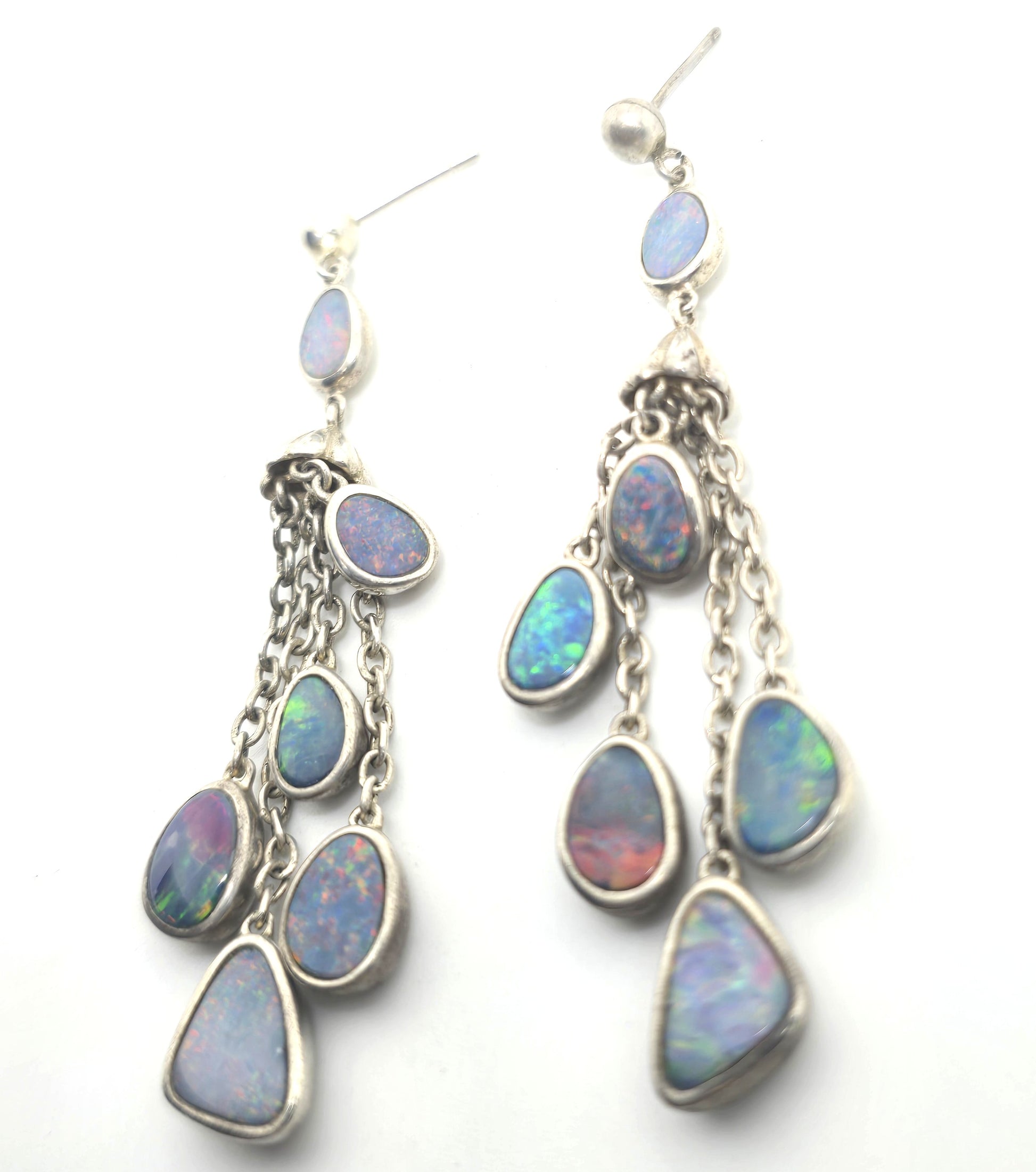 Whitney Kelly WK Blue opal triplet long drop sterling silver earrings