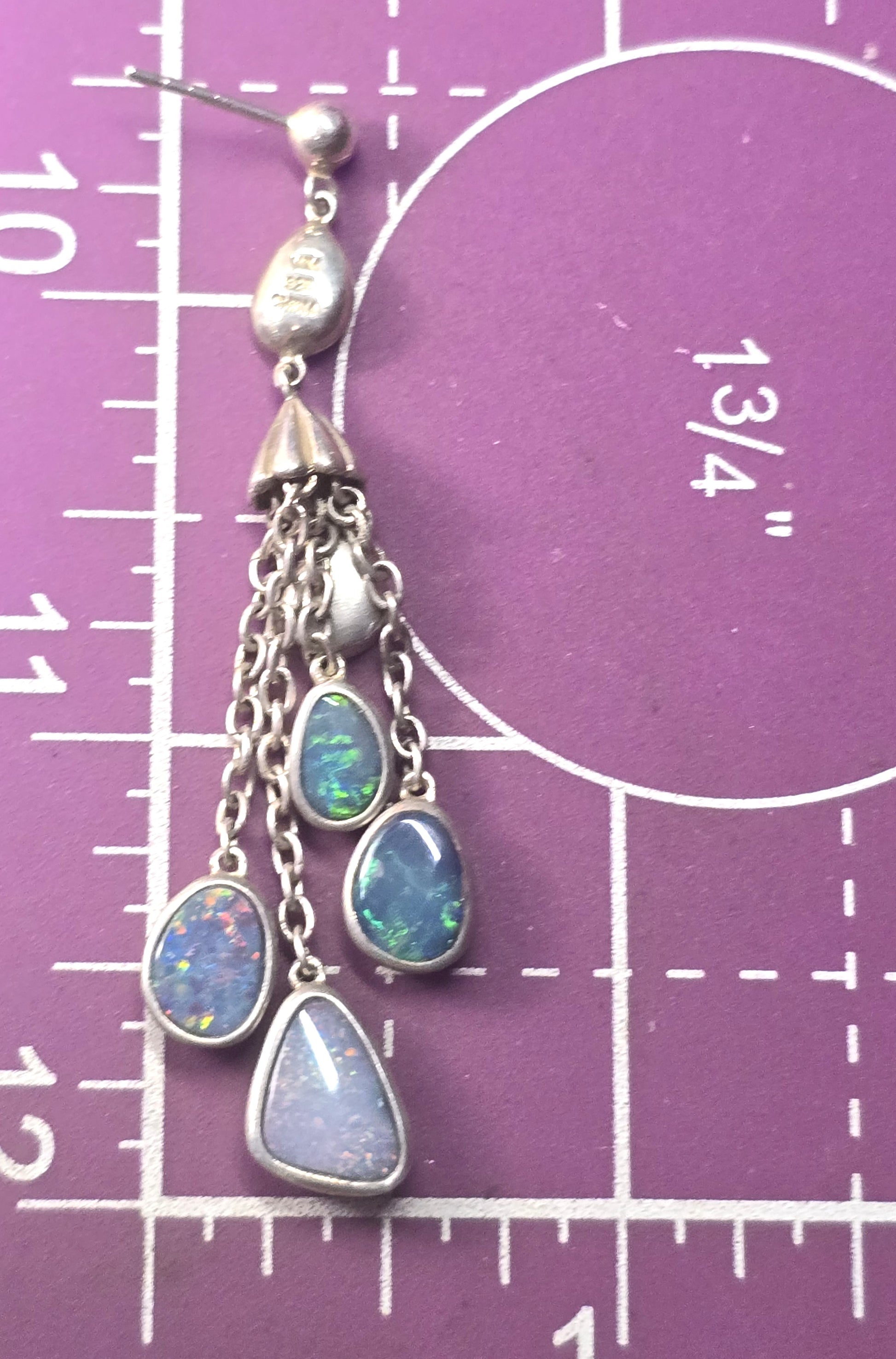 Whitney Kelly WK Blue opal triplet long drop sterling silver earrings. Good used condition with little signs of normal wear. Stamped 925 WK China on the back of the earrings. All post earrings come with new sterling silver earring backings.