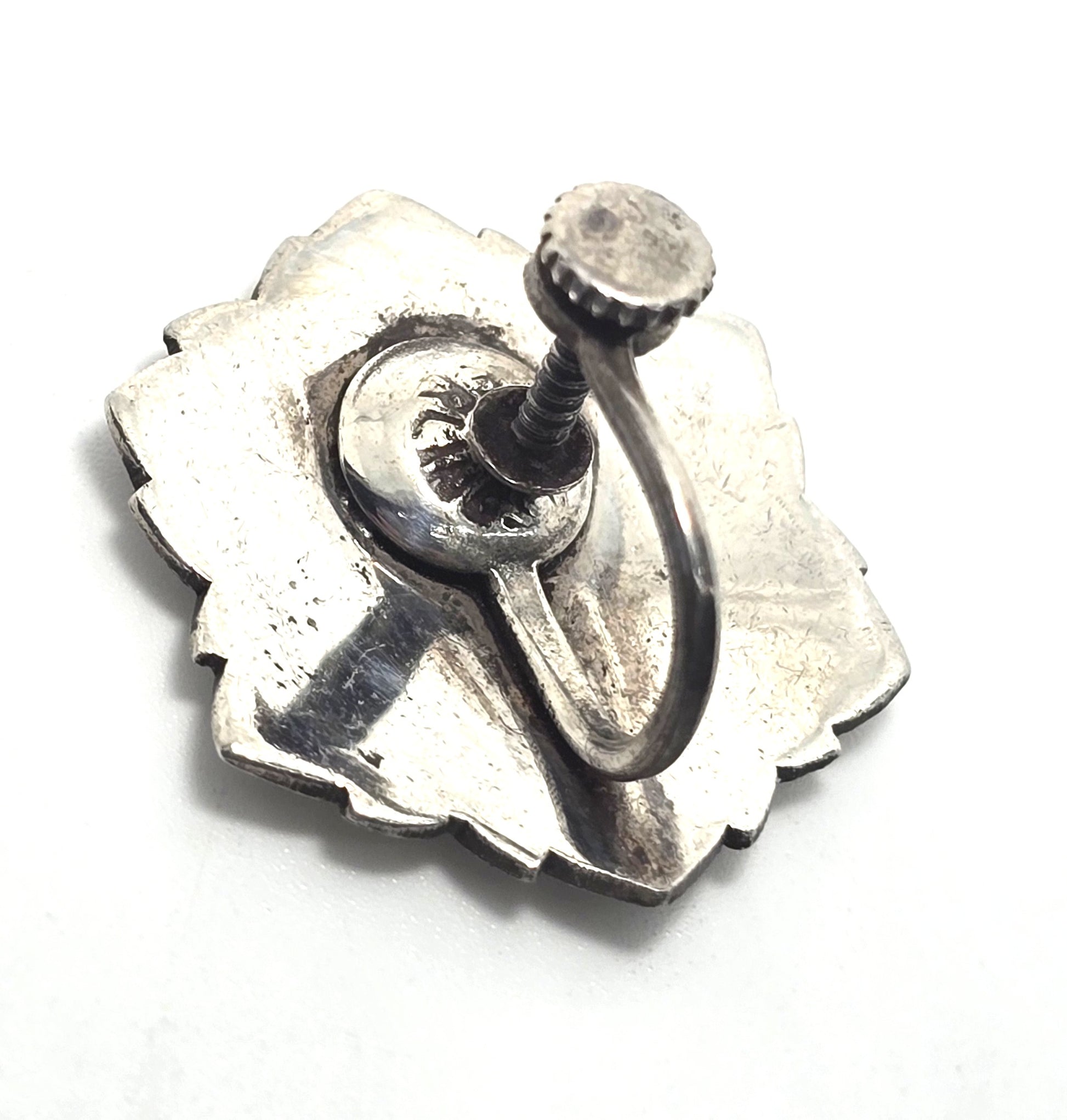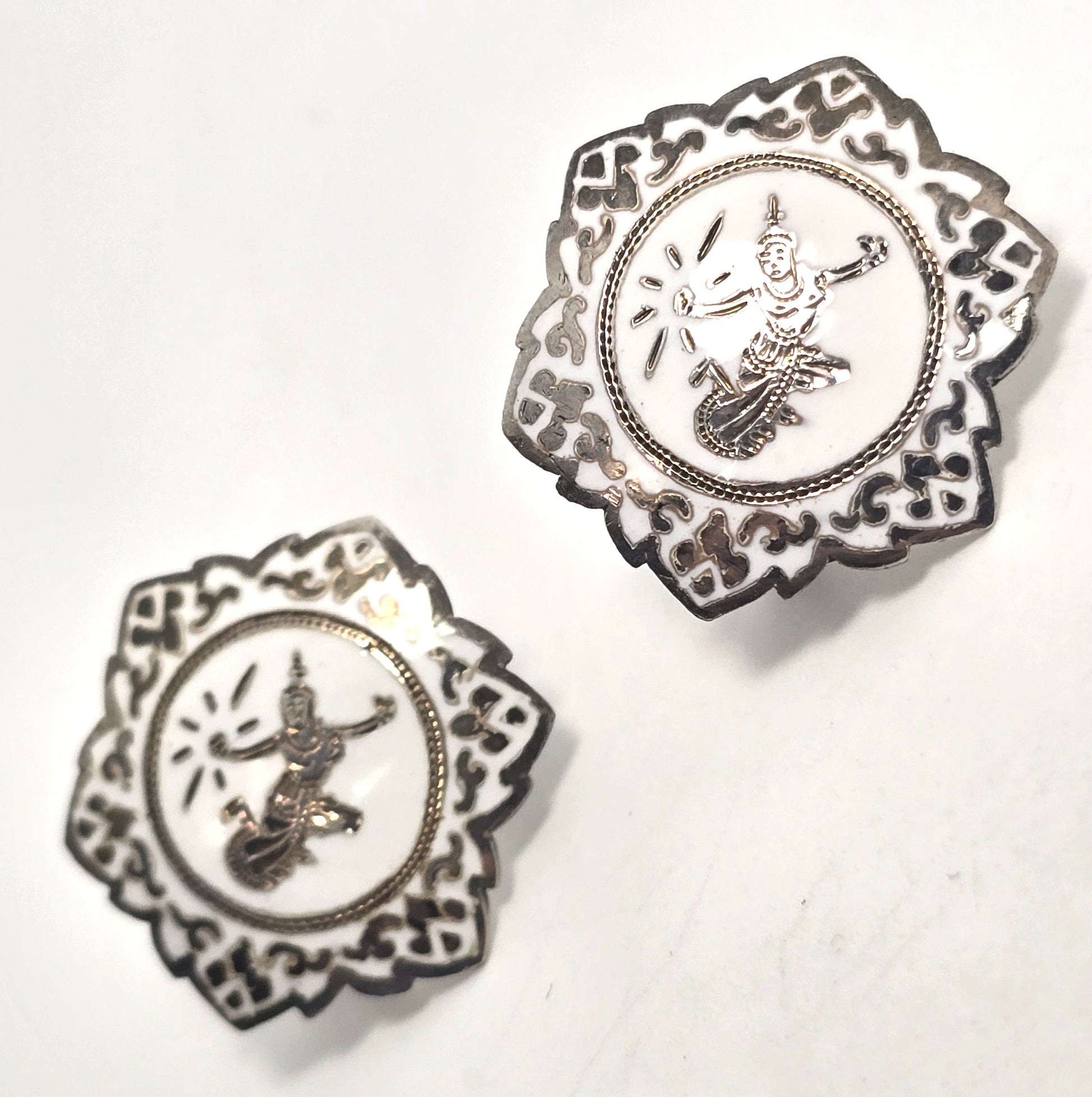Siam Nielloware Goddess White enamel sterling silver ornate screw back earrings