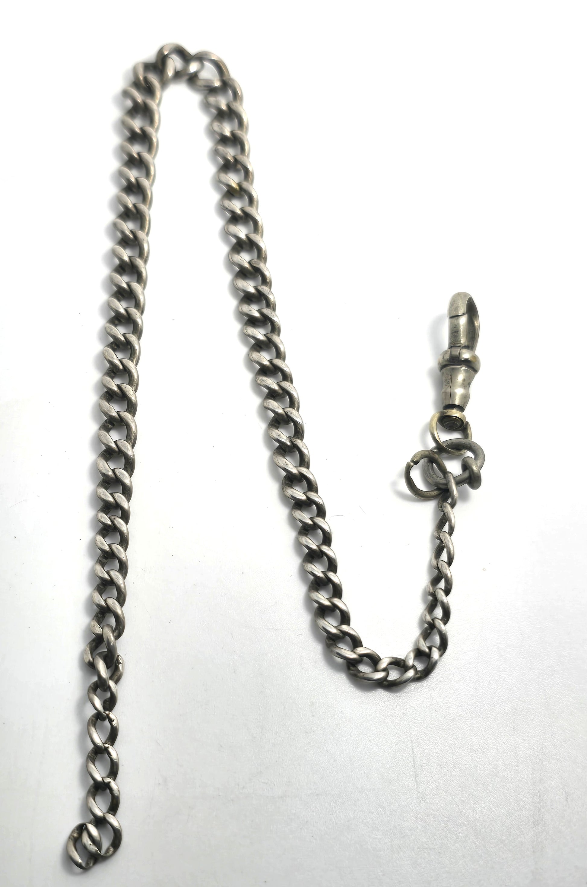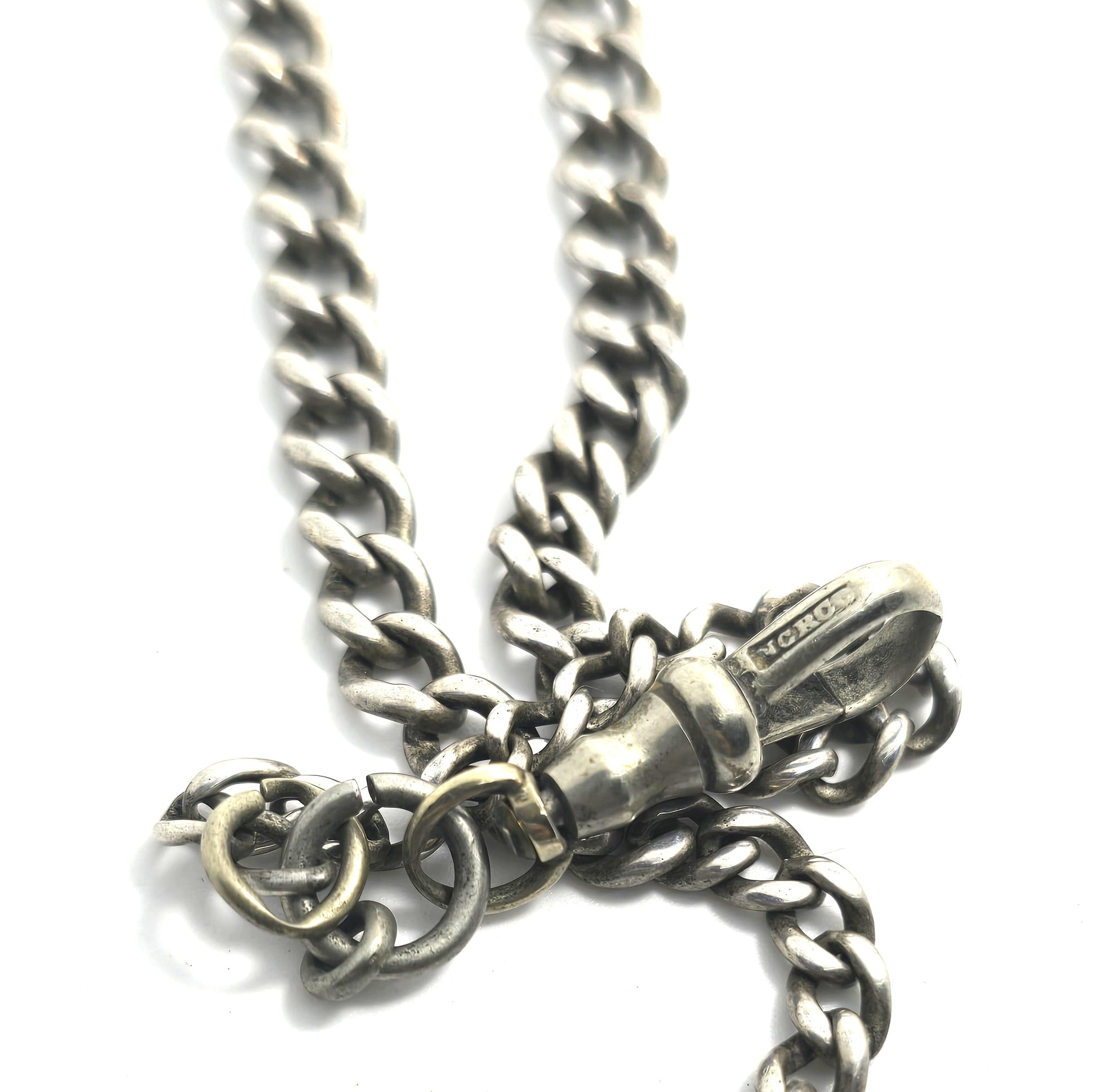 NCR Co Victorian Antique silver toned vintage watch fob chain missing clip. Good wearable used condition with wear. Stamped NCR Co on the side of the chain. Missing clasp at the end of the chain.