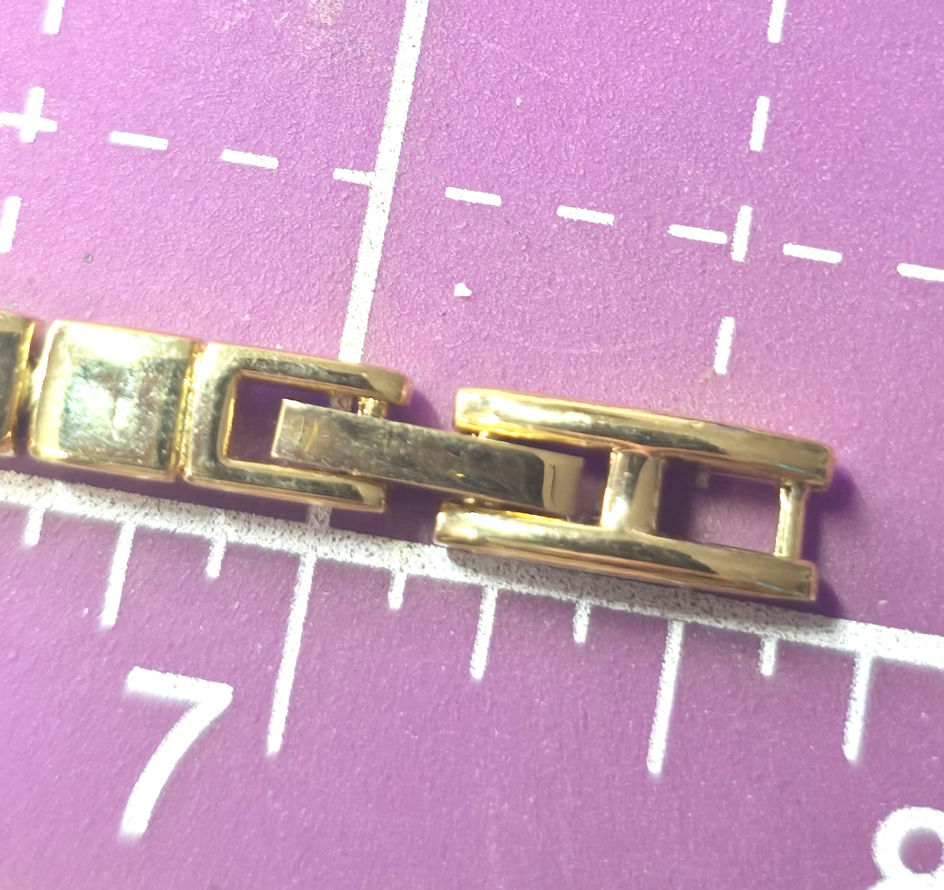 Bracelet measures 7 and 1/2 inches long and 1/8th of an inch wide.