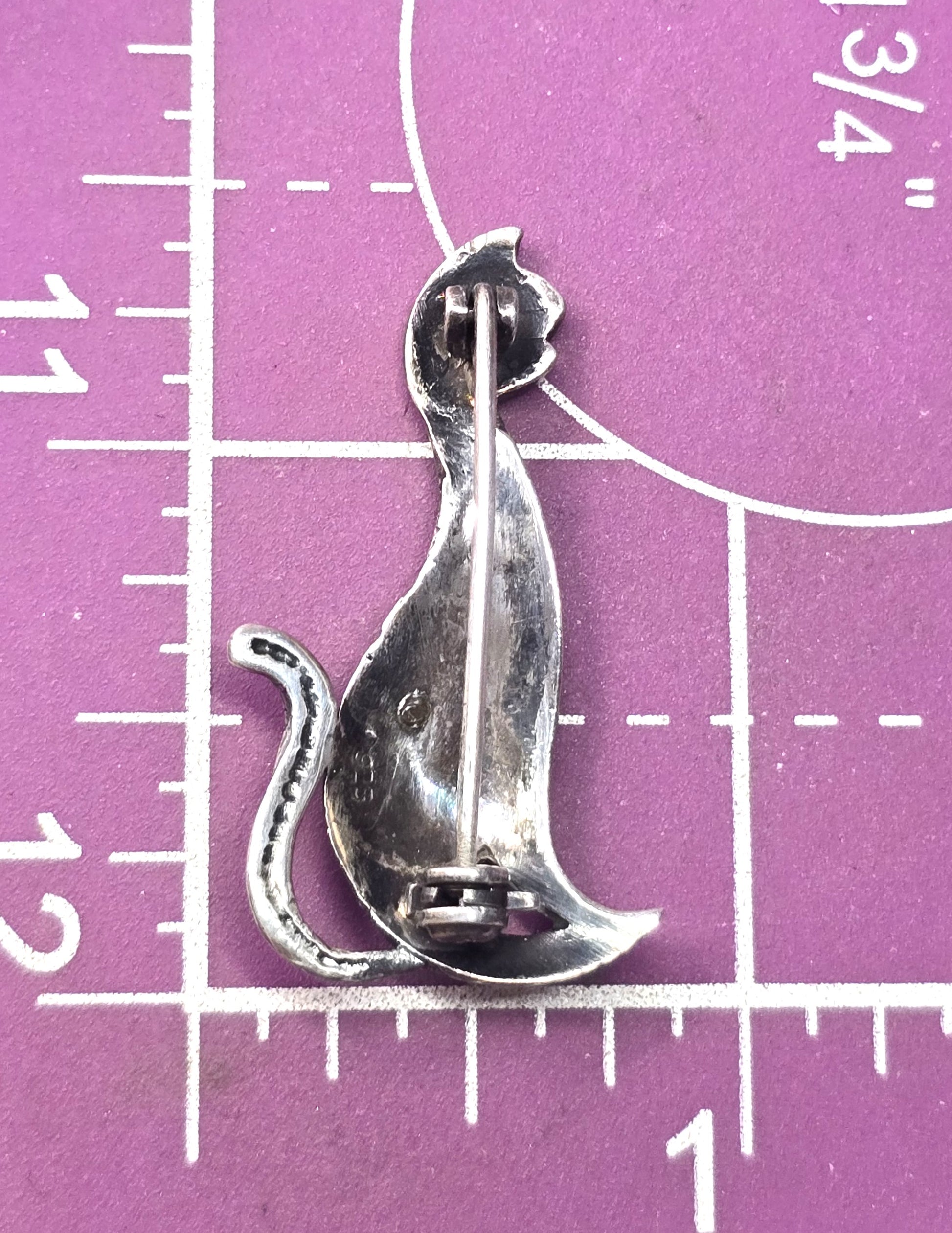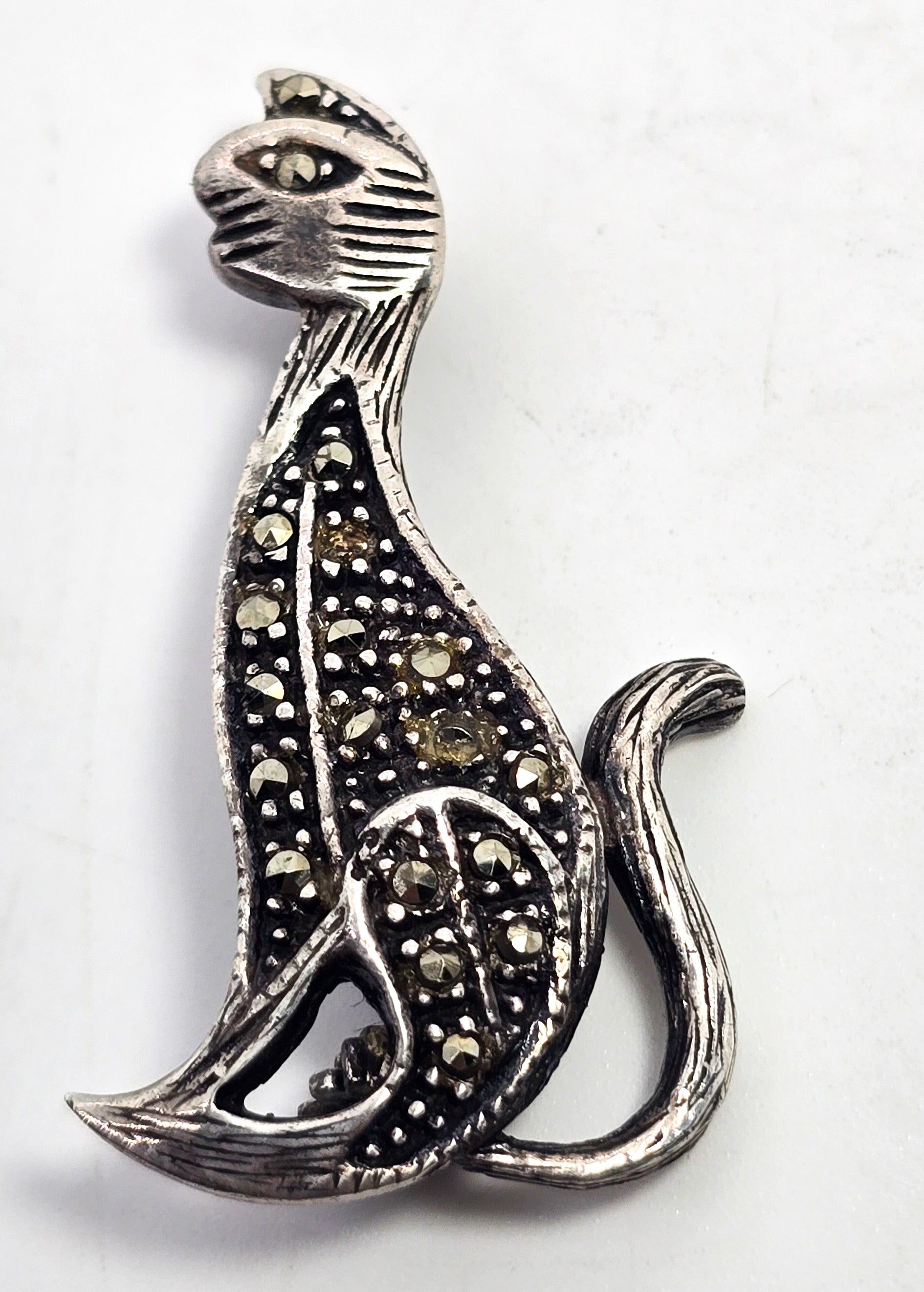 Sitting pretty cat marcasite sterling silver retro feline brooch
