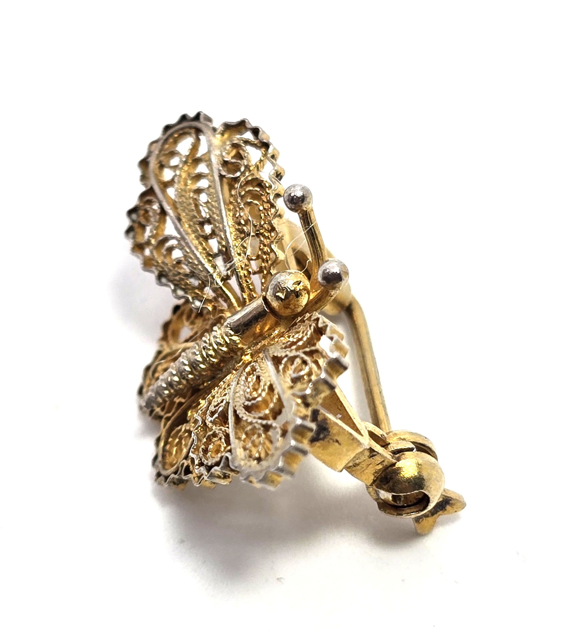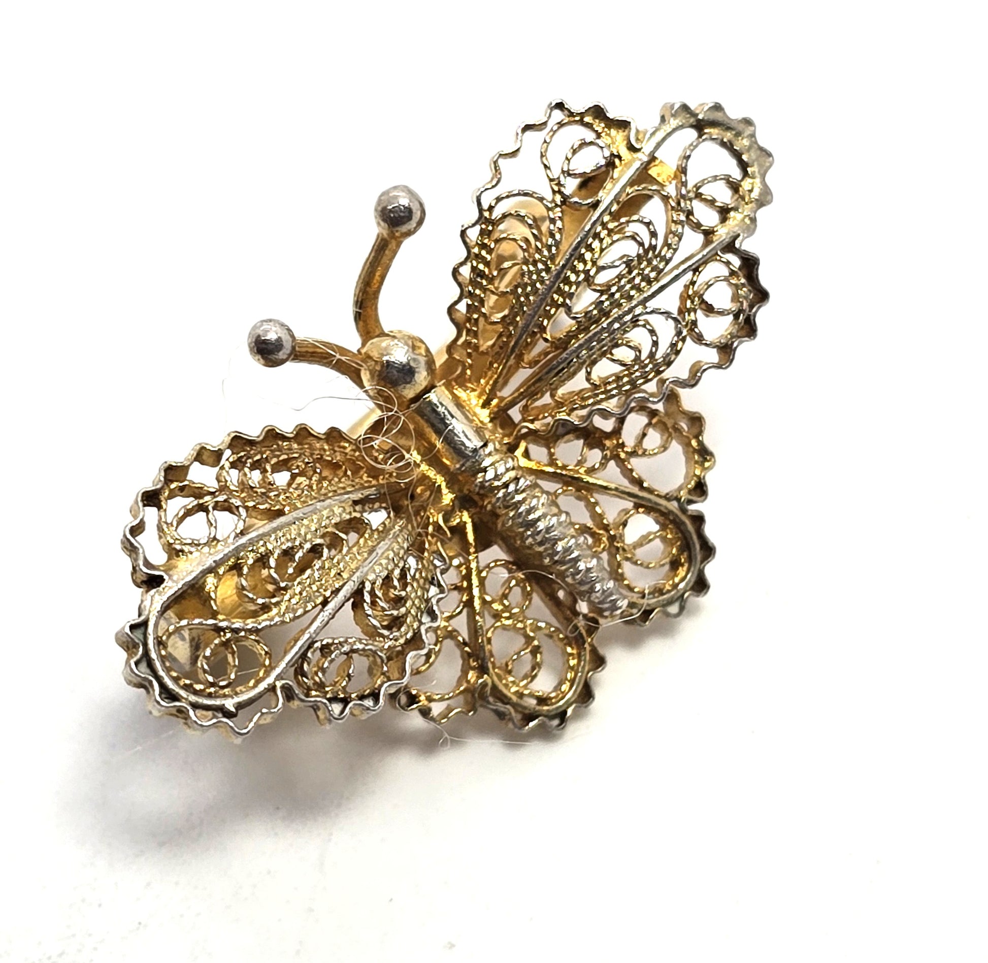 Spun silver vermeil gold over silver butterfly sterling silver vintage Brooch. Great vintage condition with little signs of wear. Stamped on the back side of the brooch 800. Stunning craftsmanship