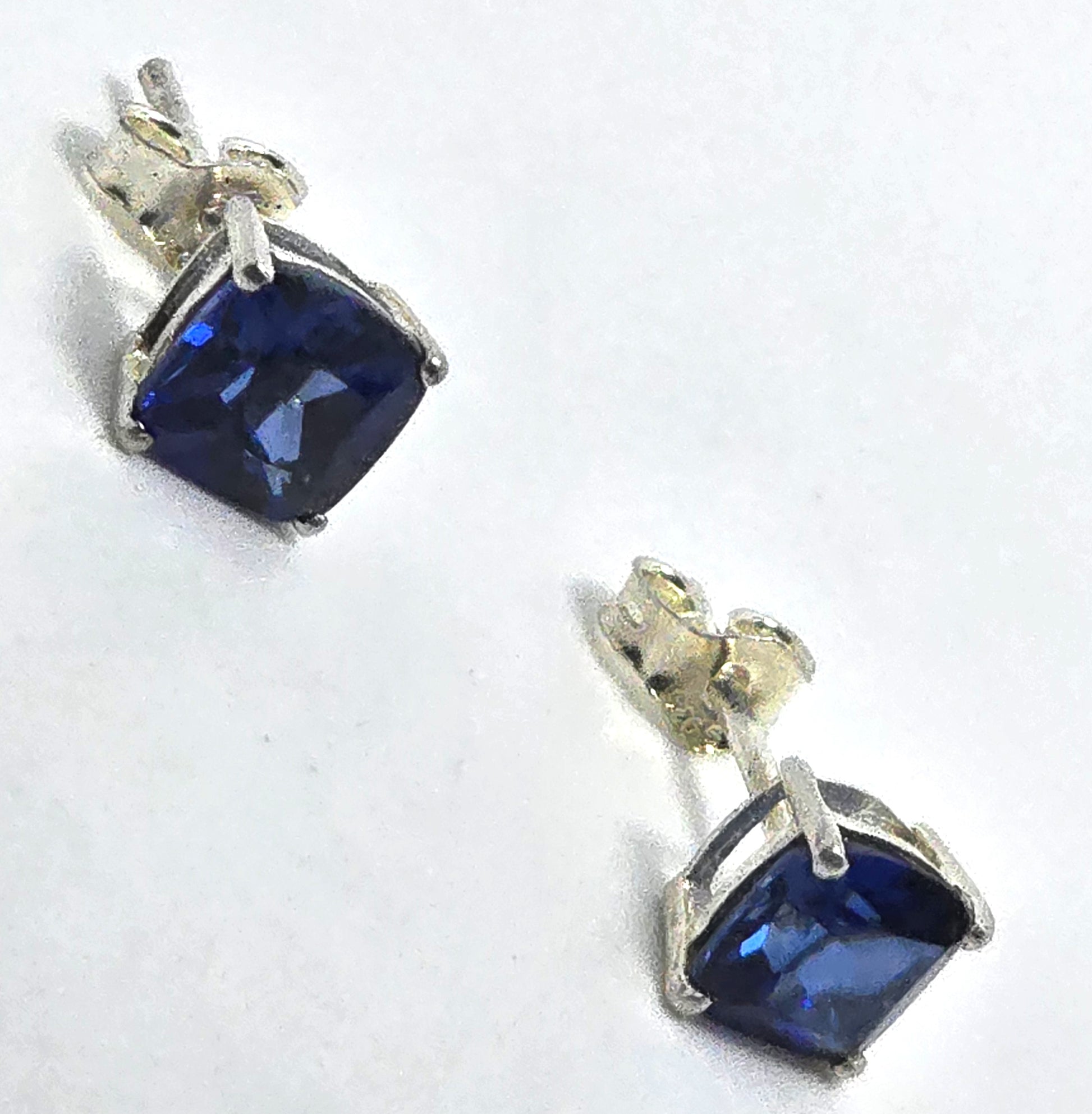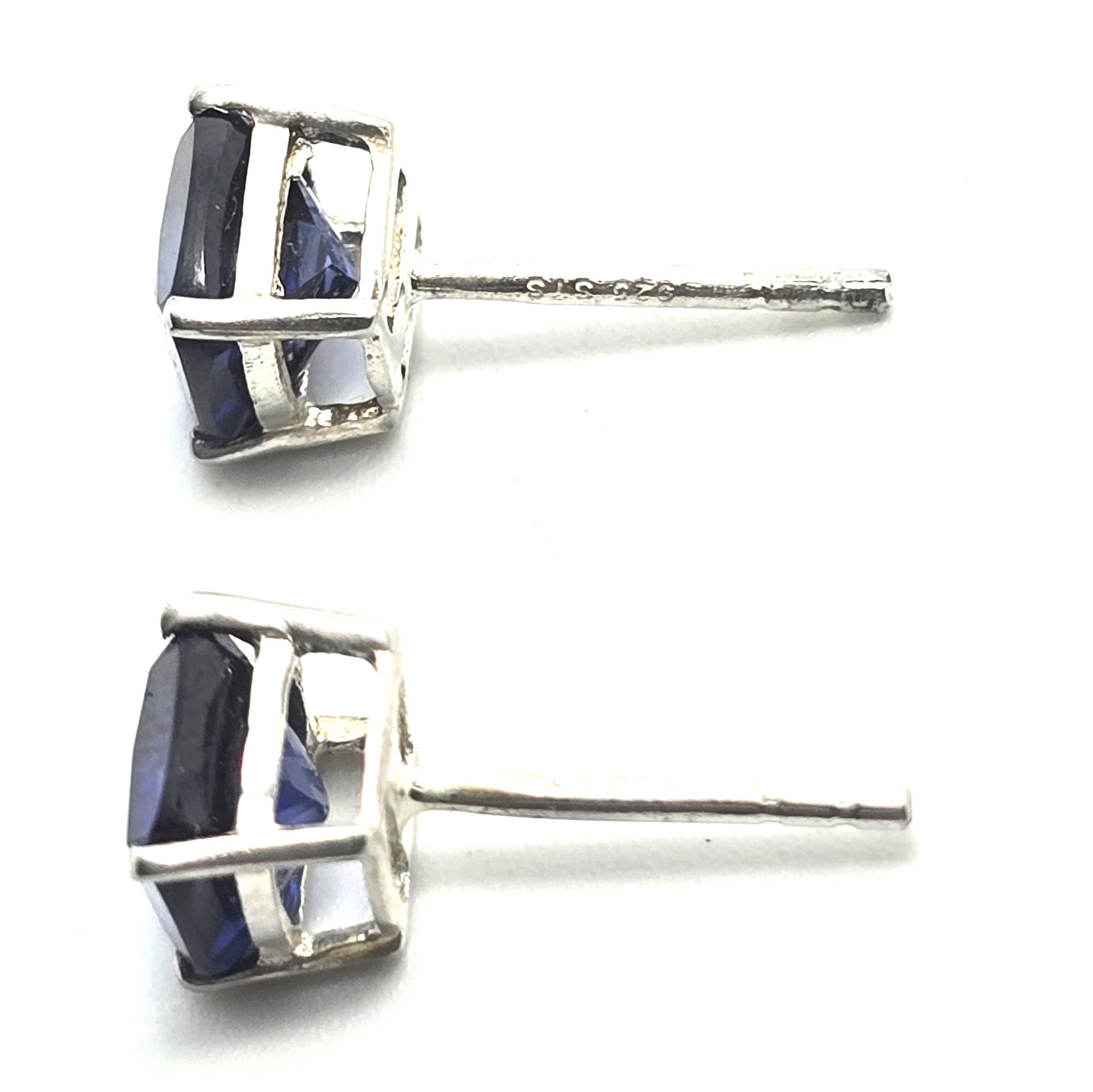 STS blue sapphire princess cut 1ct sterling silver stud earrings NWT. Good condition with little to no signs of normal vintage wear. Comes with original hang tag stating made in India. Stamped on the post STS 925.