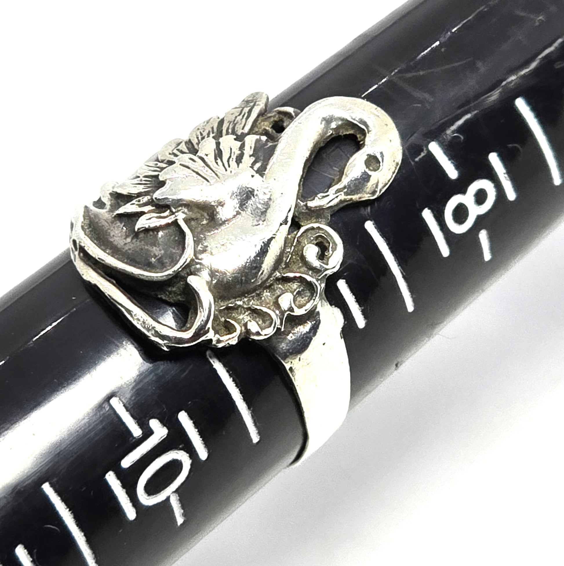 Swan figural vintage sterling silver vintage sweetheart love ring size 9