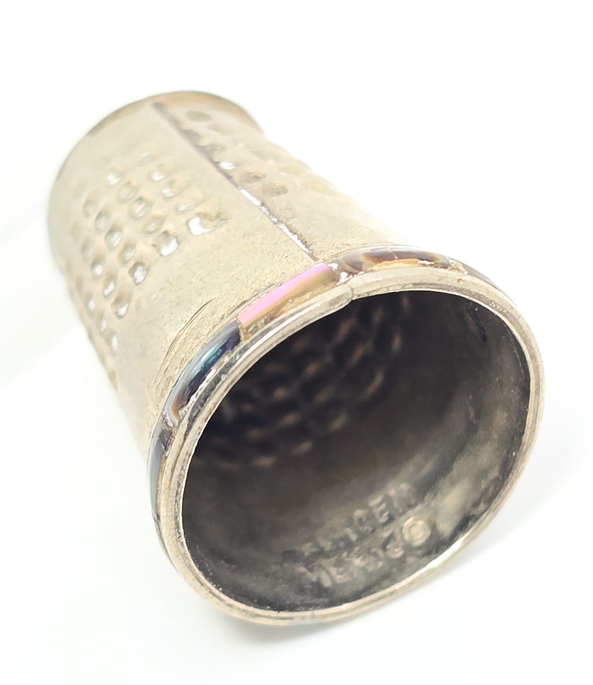 Mexico alpaca silver vintage embossed abalone shell sewing thimble