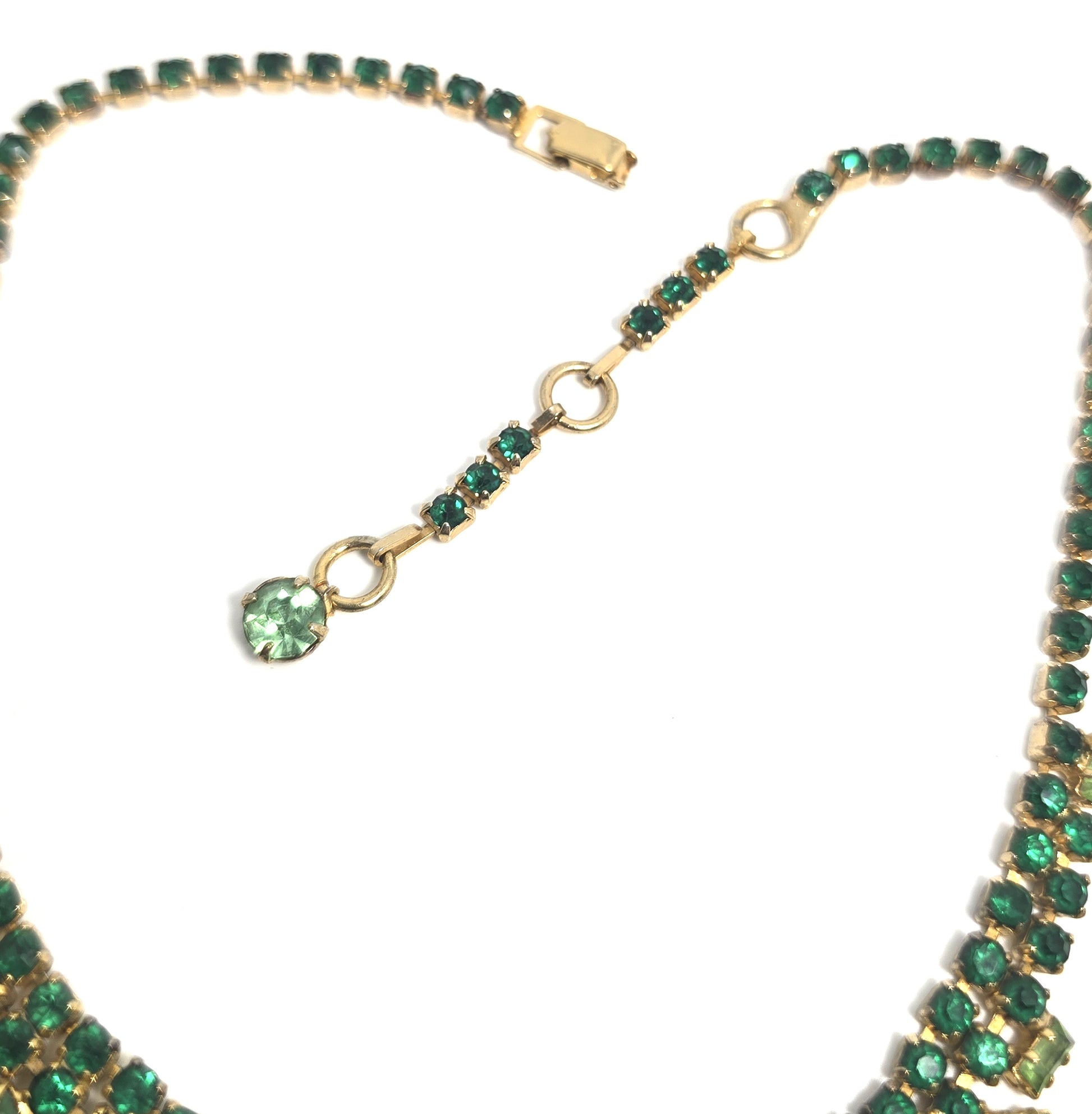 Continental Deep green and Uranium Glass rhinestone vintage m d century Necklace