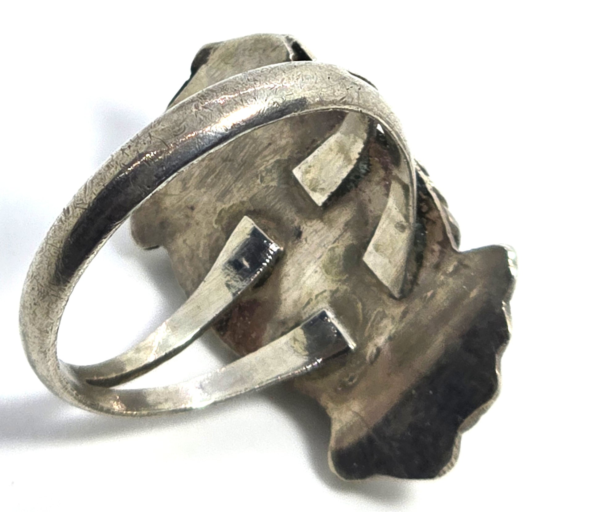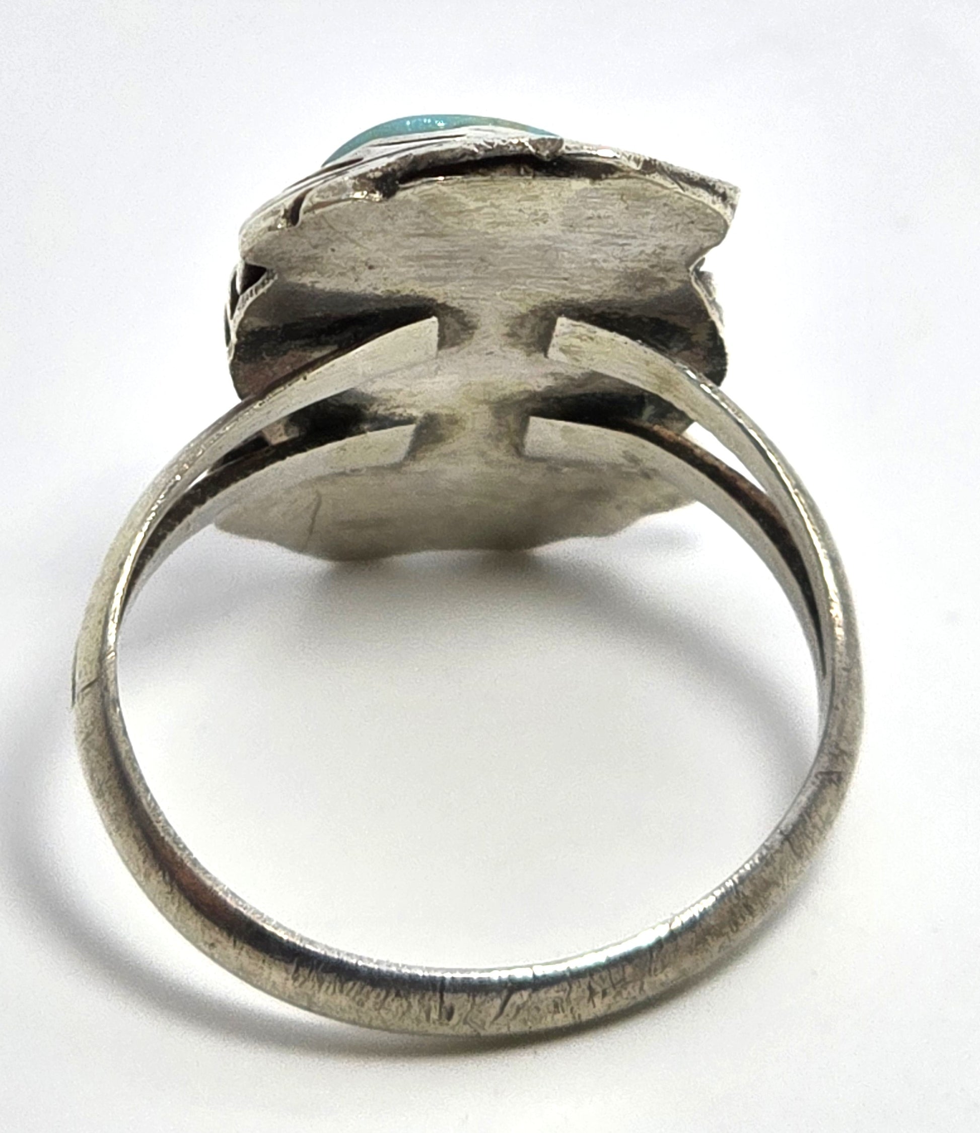 Turquoise Navajo Native American double feather vintage sterling silver ring size 9