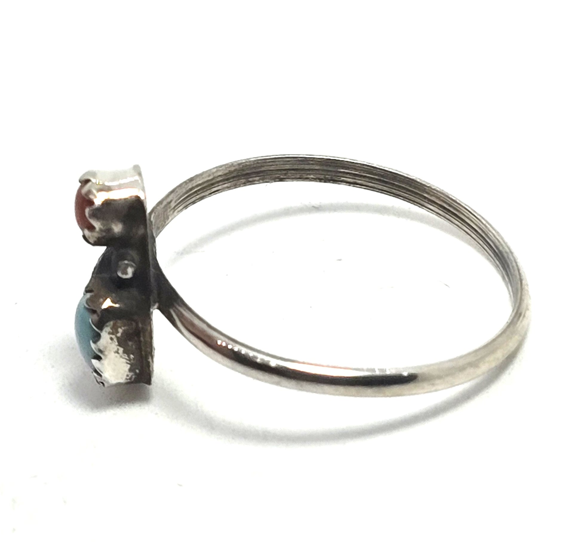 Turquoise Red coral small petite Navajo vintage sterling silver ring size 8