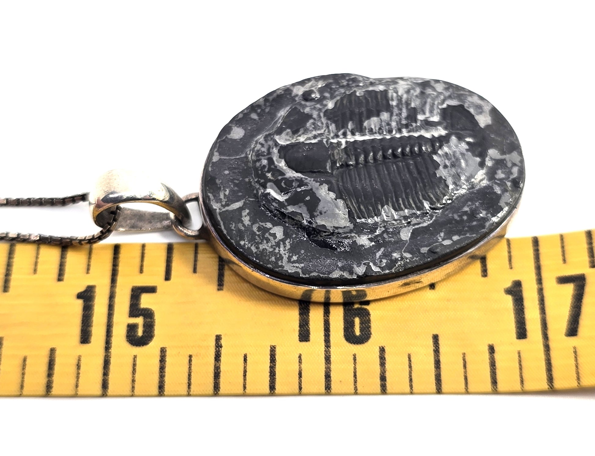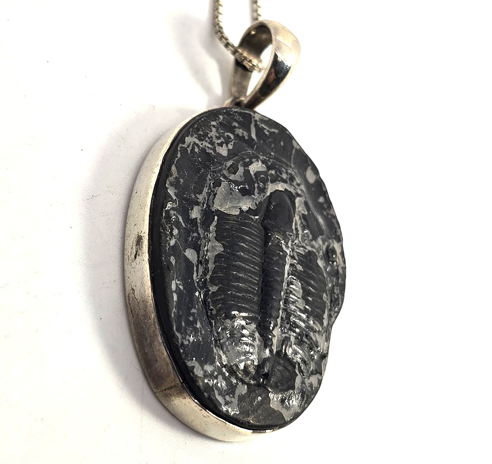 Sajen Trilobite Fossil Pendant vintage Sterling Silver framed Pendant Necklace