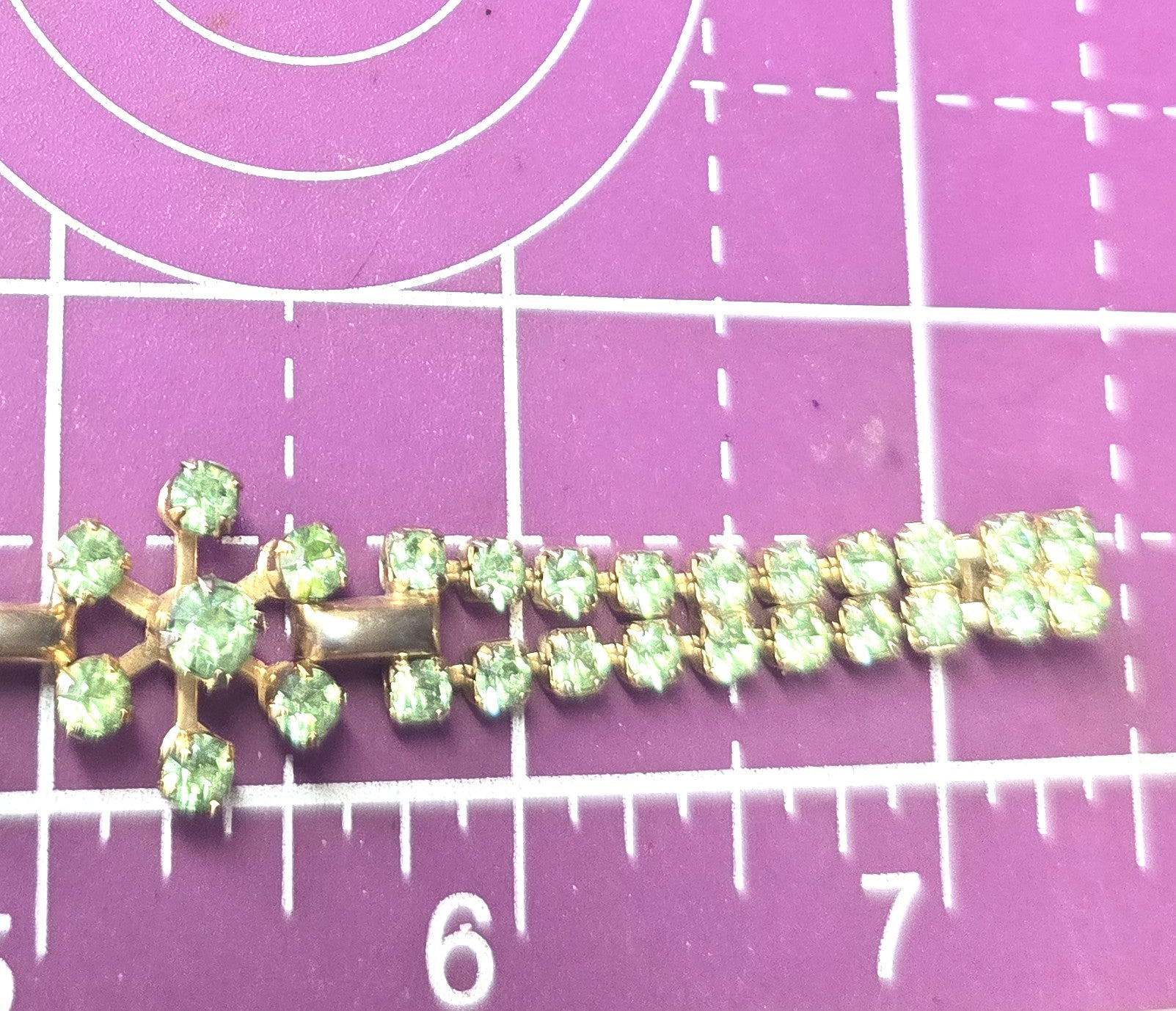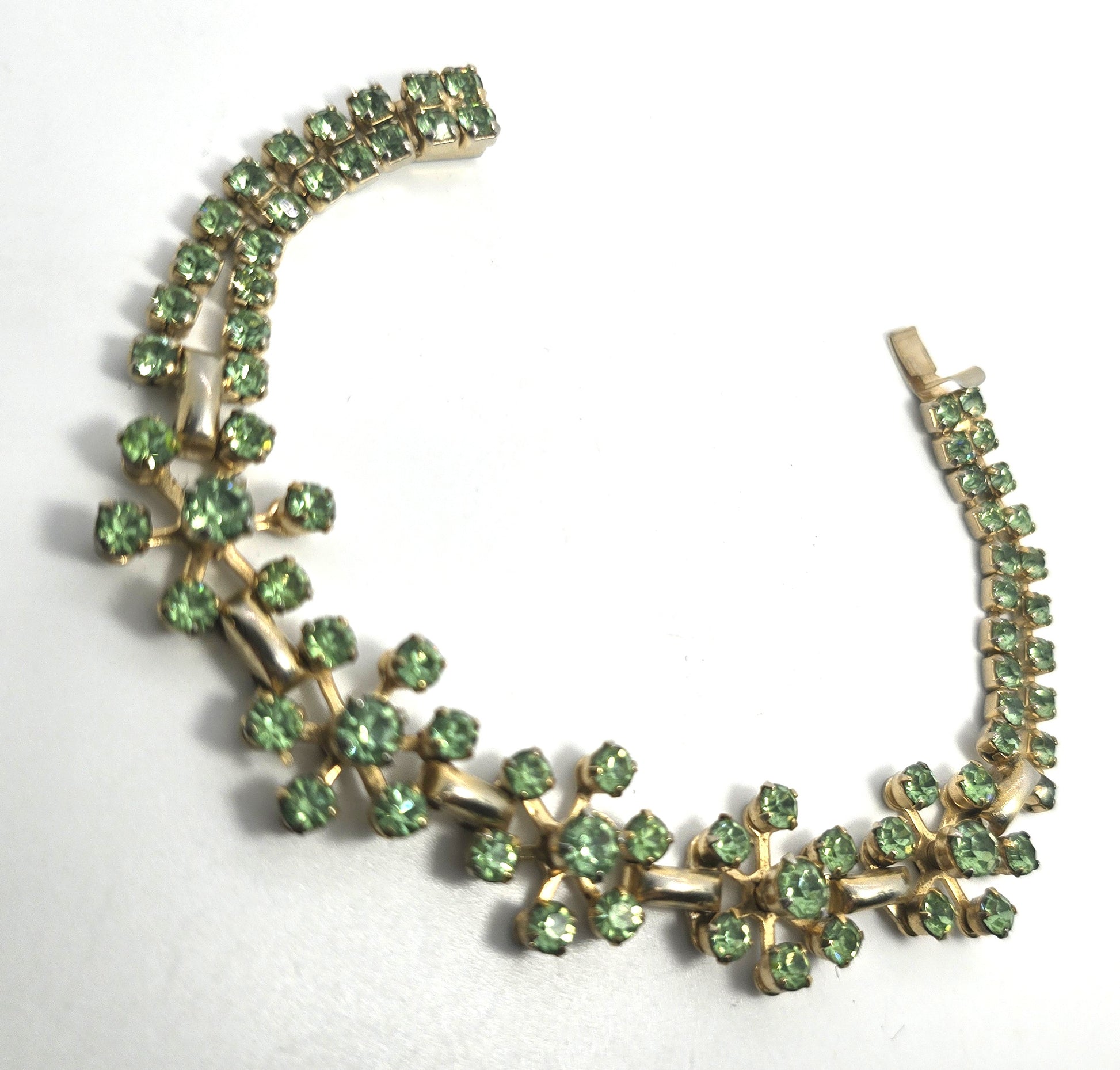 Uranium Glass flower green rhinestone vintage thick rhinestone tennis bracelet