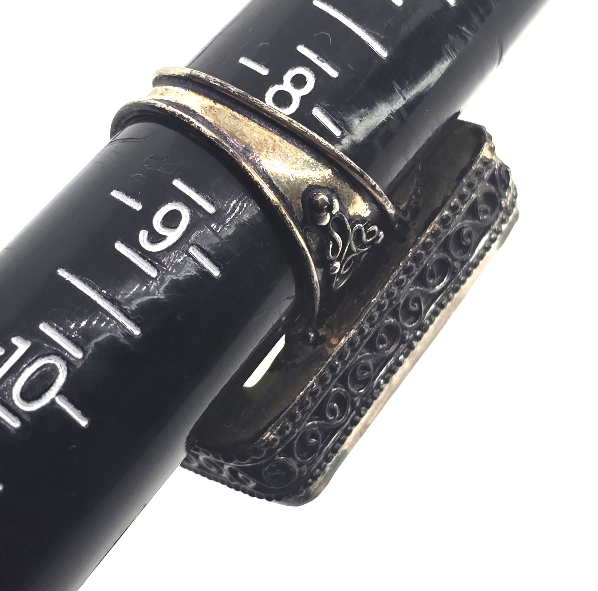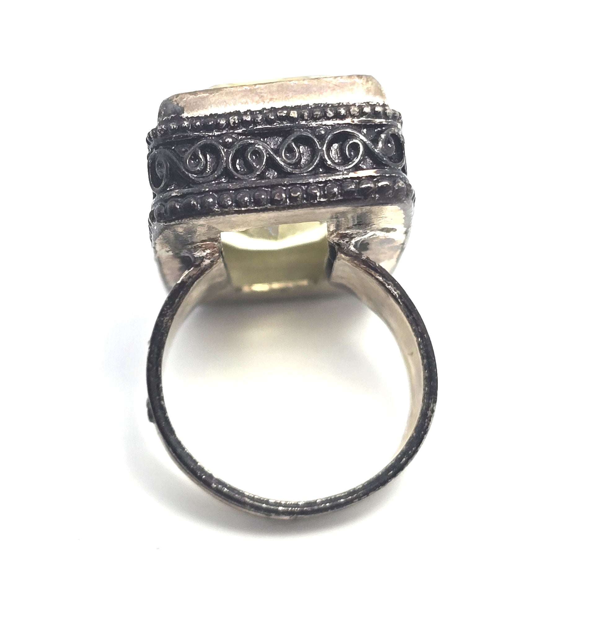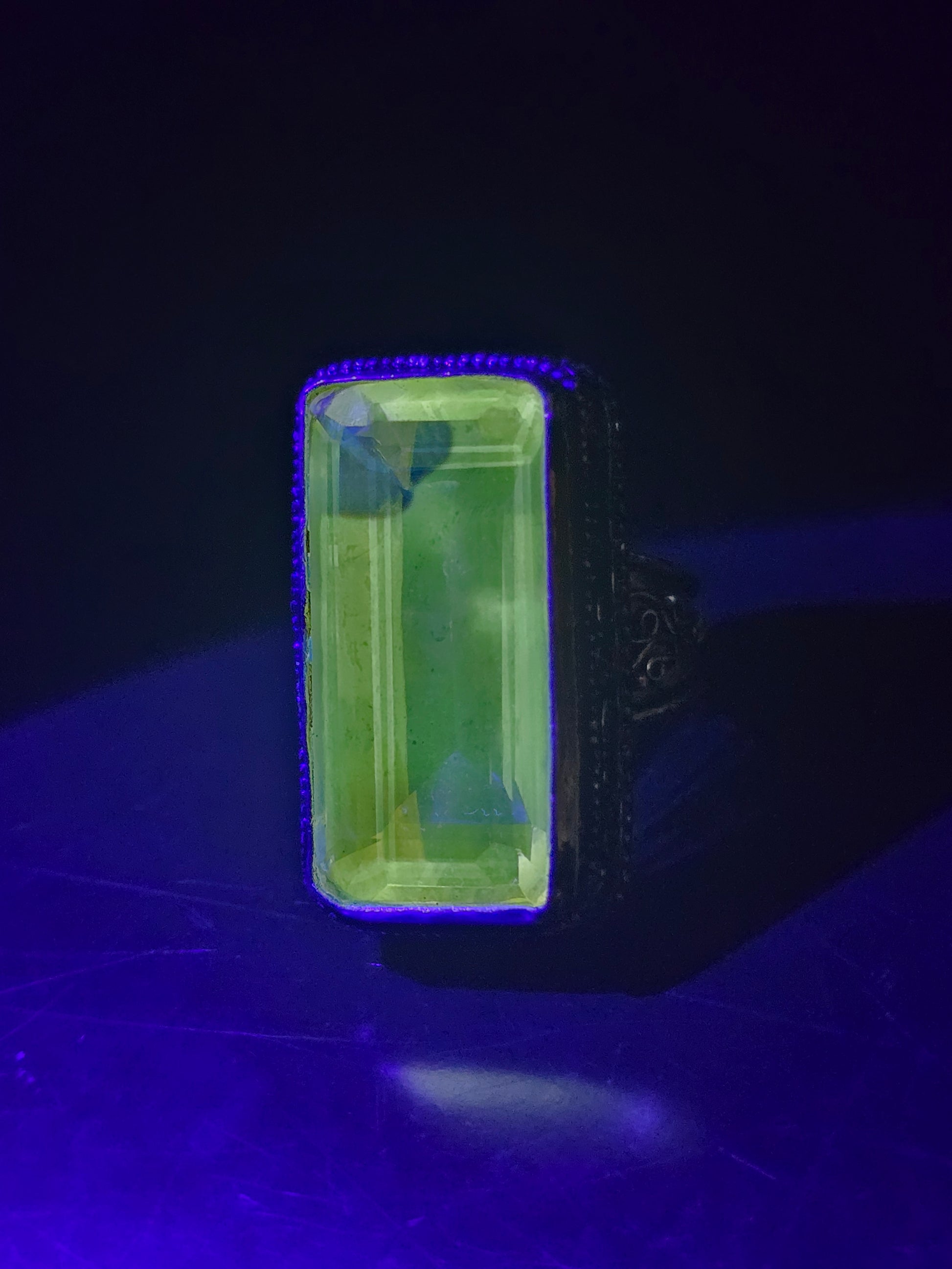 Uranium Glass UV glow Vaseline glass silver plated filigree vintage ring