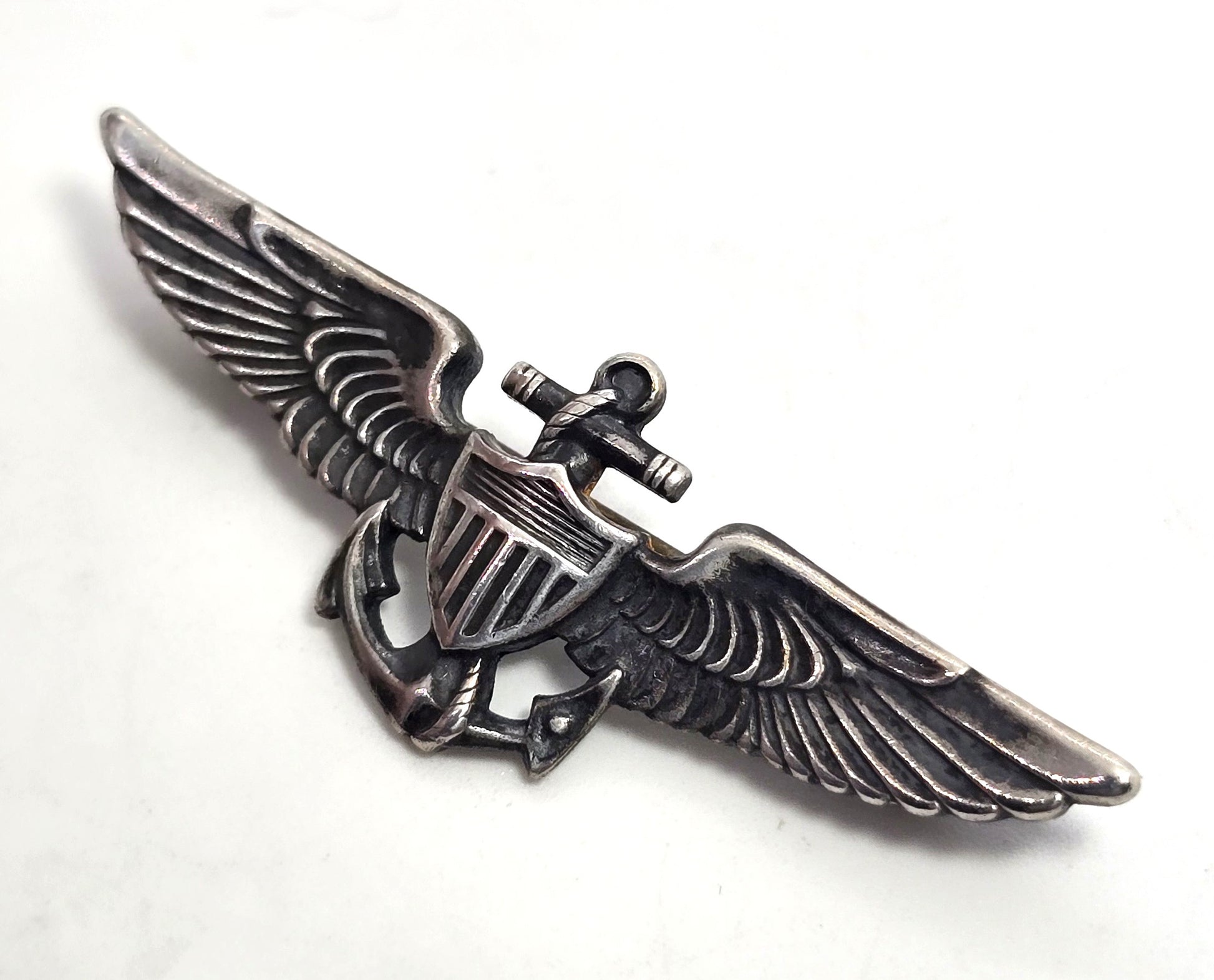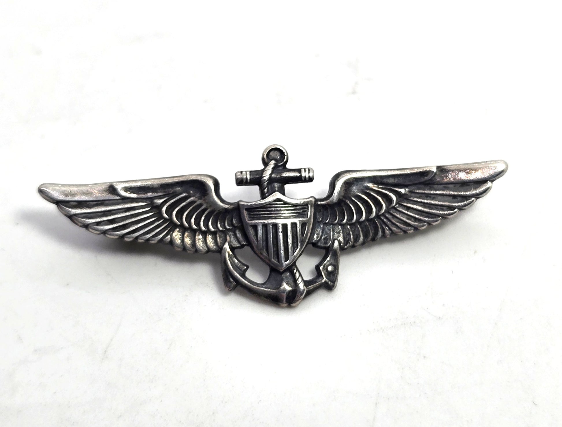 WW2 USN United States Navy Naval Observer Wings Sterling Silver Pin back