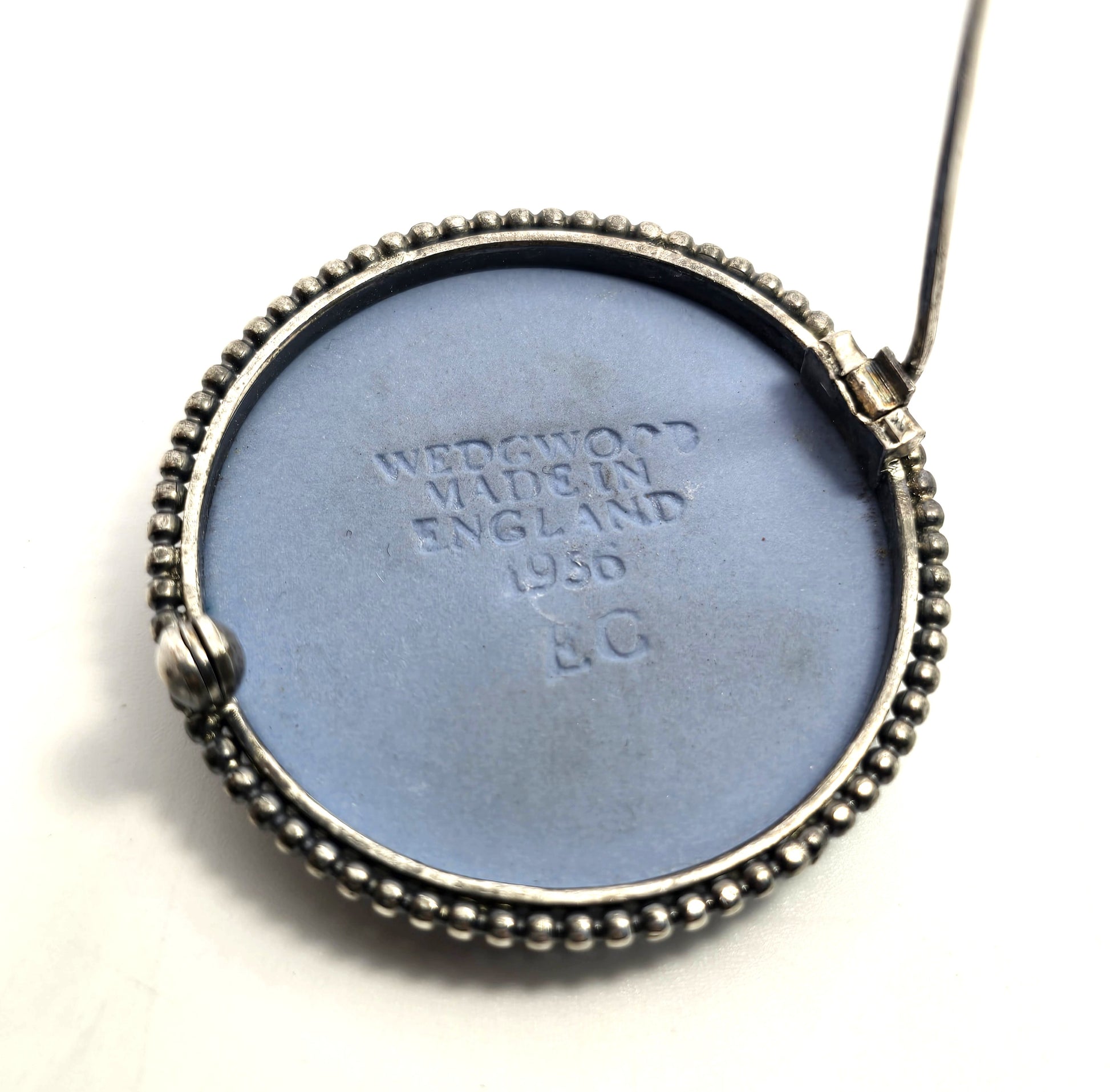Blue Wedgewood Jasperware cameo vintage sterling silver 1958 Large Brooch