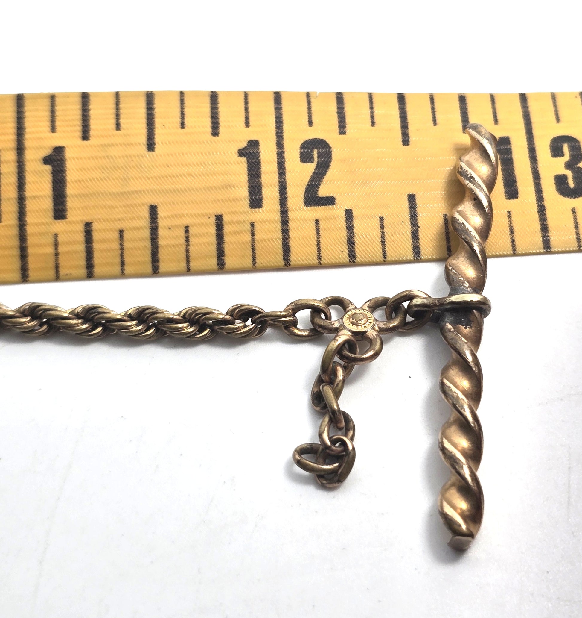 Victorian antique gold filled twisted rope T bar button hole watch fob