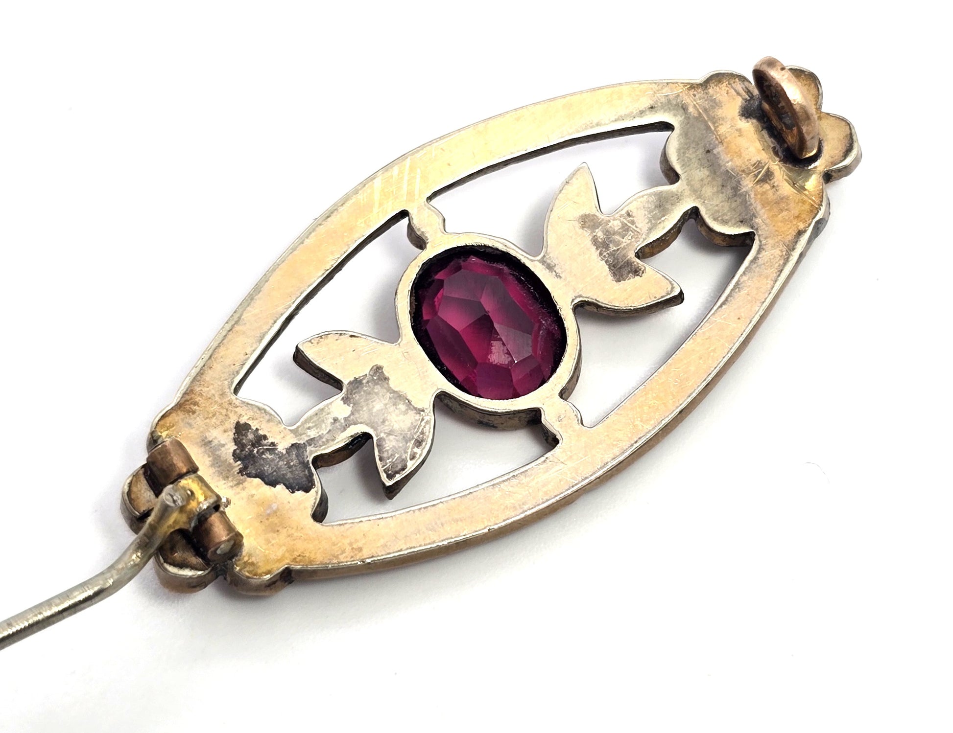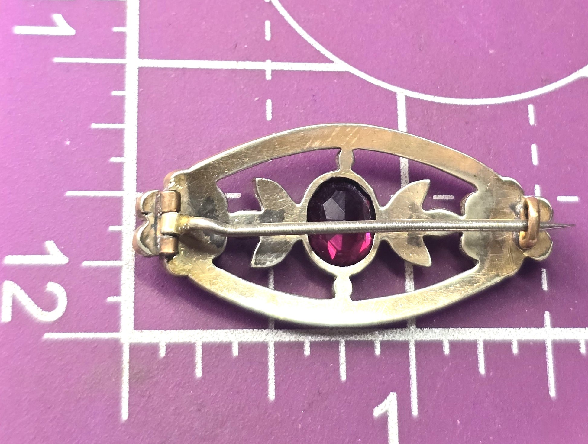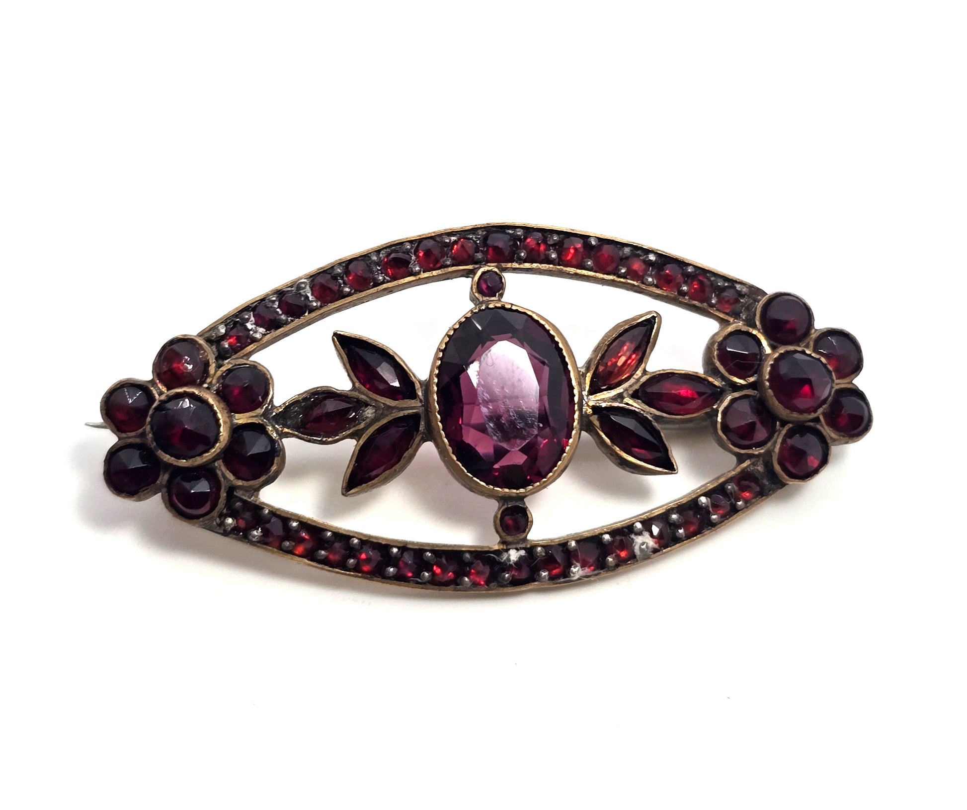 Bohemain Garnet Victorian Antique red yellow gold filled vintage flower brooch