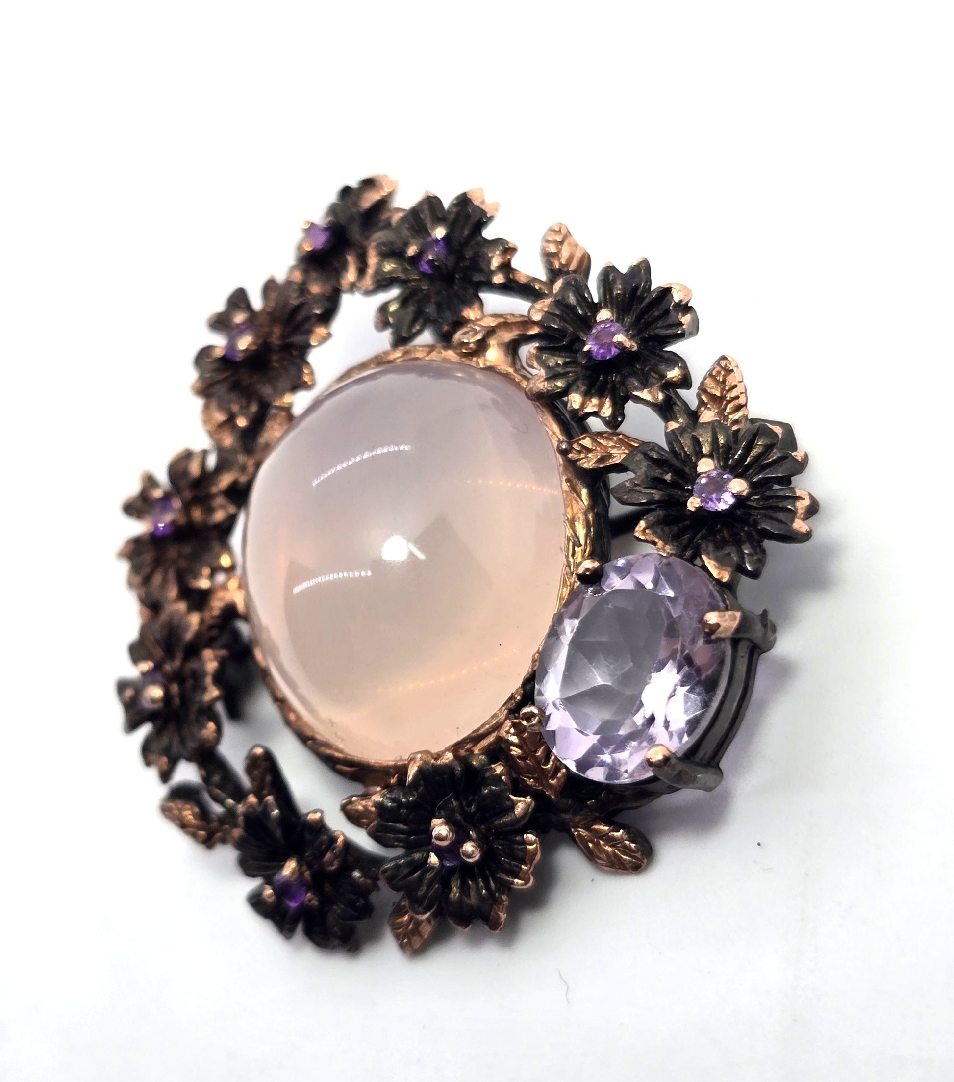 Rose Quartz Amethyst and Tanzanite gold over sterling silver pendant brooch