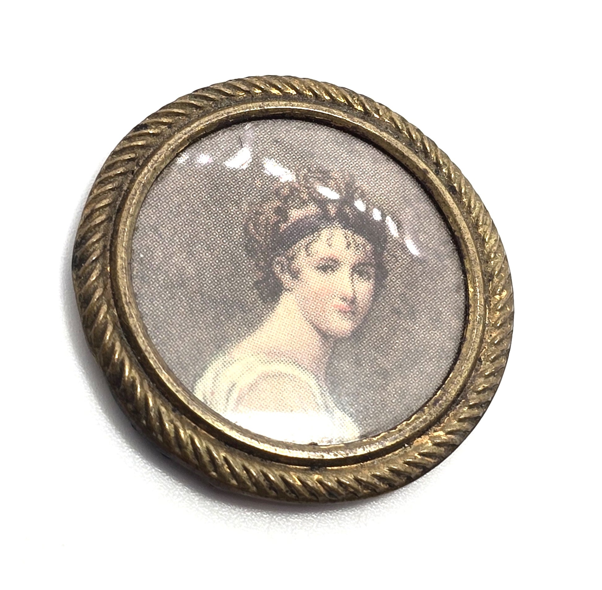 Victorian Memento Mori Tin cameo antique Mourning framed picture Fair antique condition with some signs of normal wear. Twisted brass frame. Could have been in a brooch or larger piece. Signs of wear to the metal on the back of the picture.