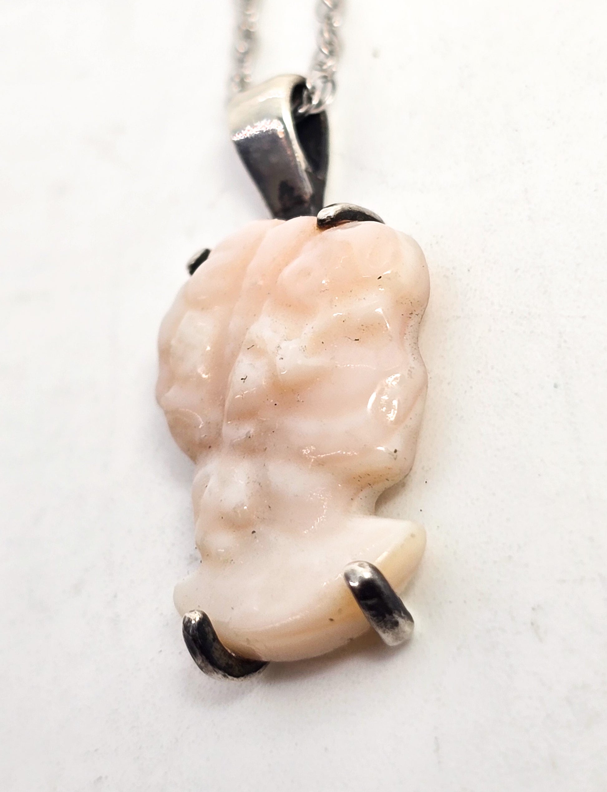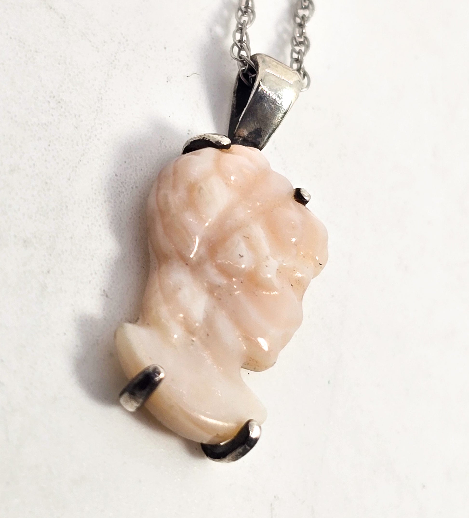Pink Angel Skin Coral Carved Cameo antique sterling silver pendant necklace