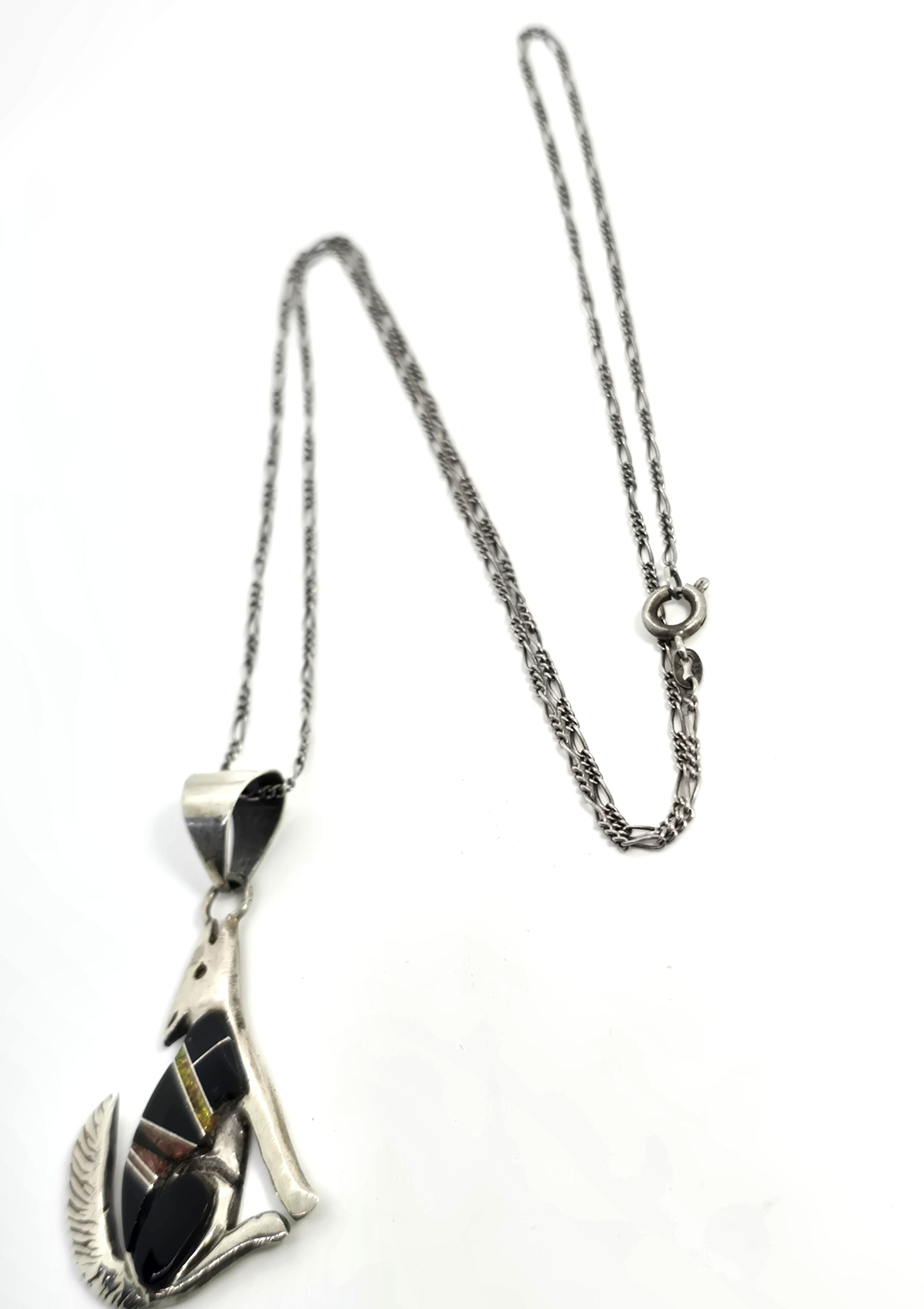 Calvin Begay Navajo wolf onyx opal gemstone inlay vintage sterling silver necklace