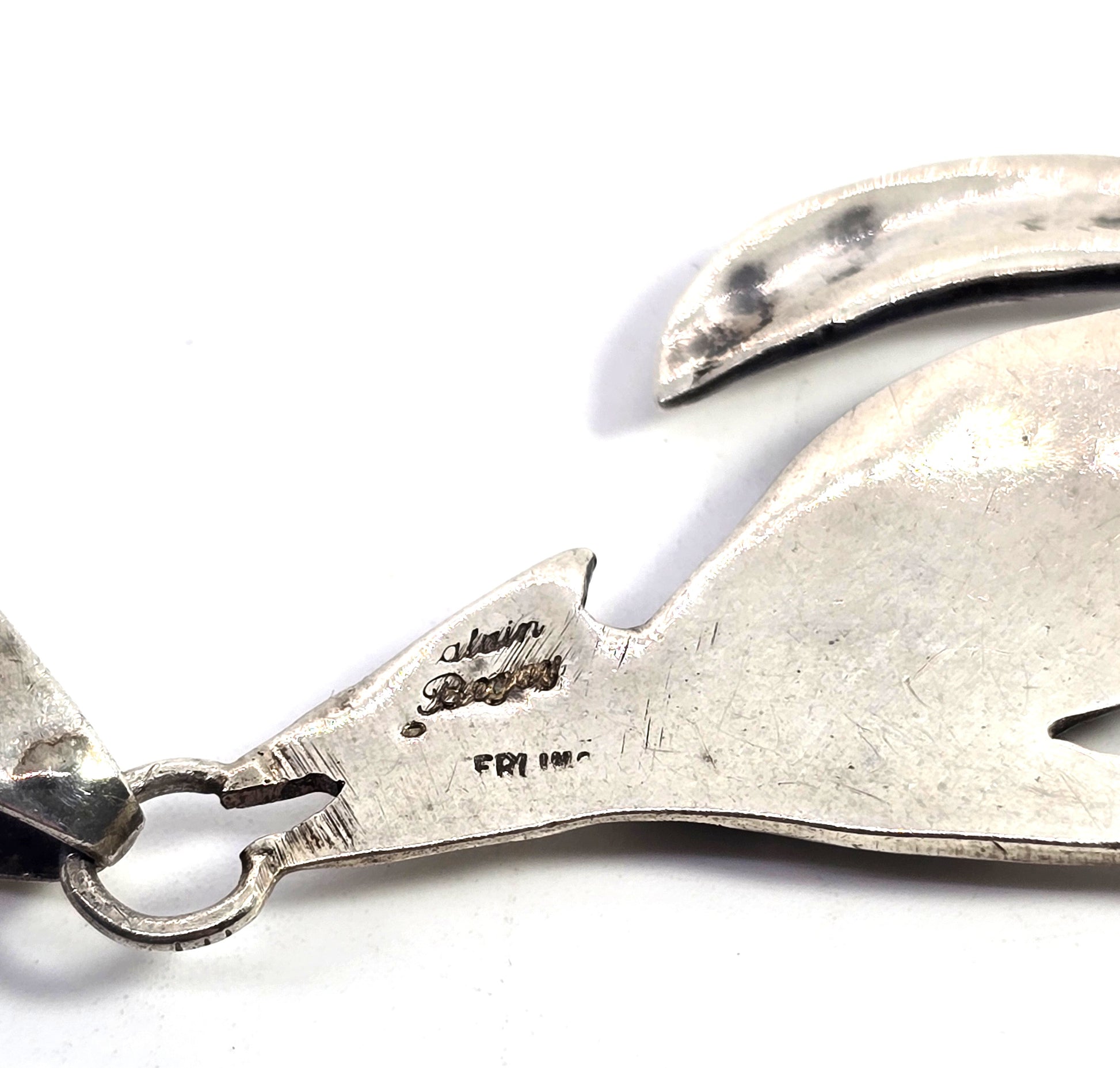 Acid tests positive for sterling silver.
