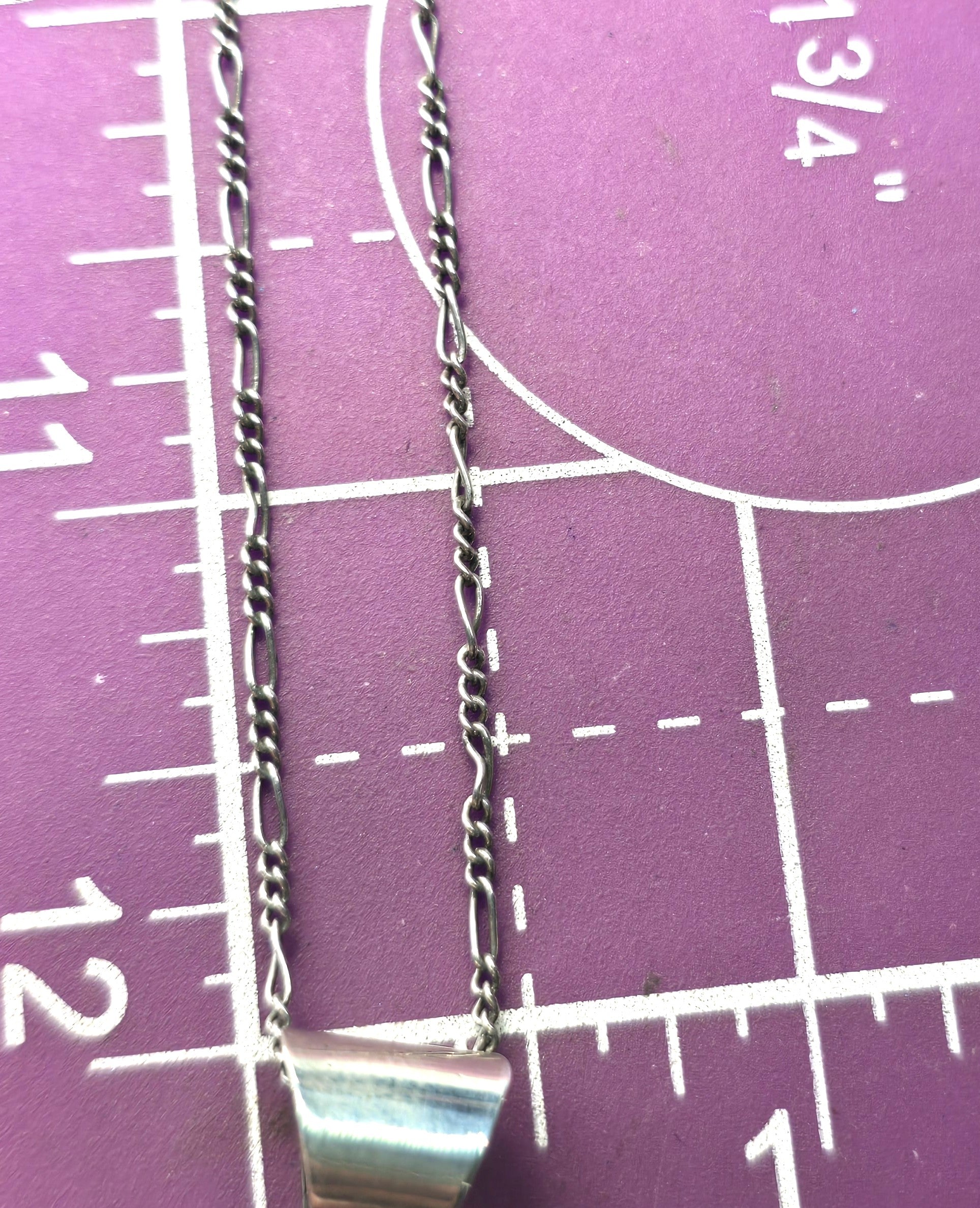 Pendant measures 2 and 1/8 of an inch tall and 1 and 1/8ths of an inch wide.