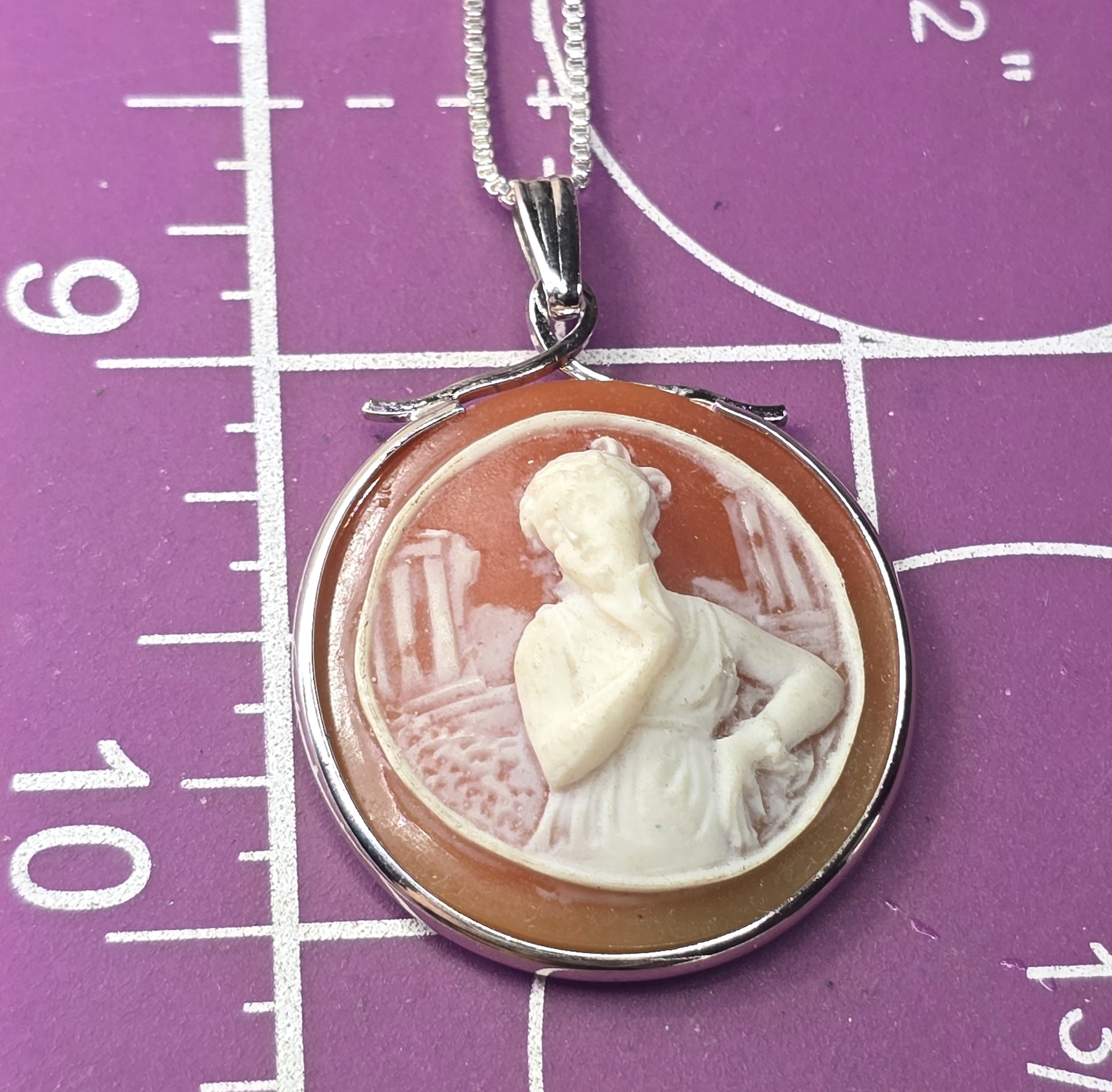 Sterling silver resin Greek female Cameo MCM sterling silver framed necklace