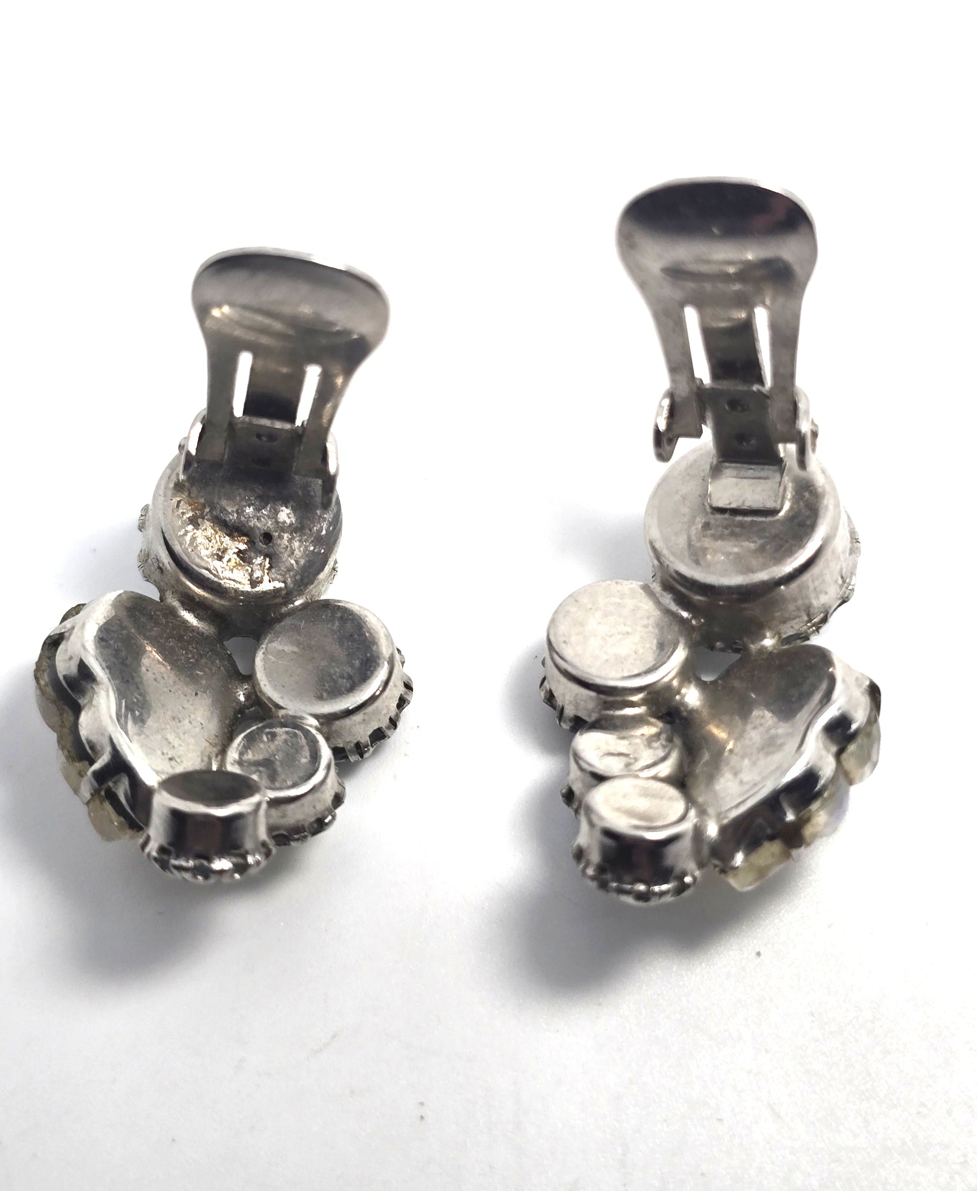 Weiss molded glass leaf blue aurora borealis rhinestone vintage clip on earrings