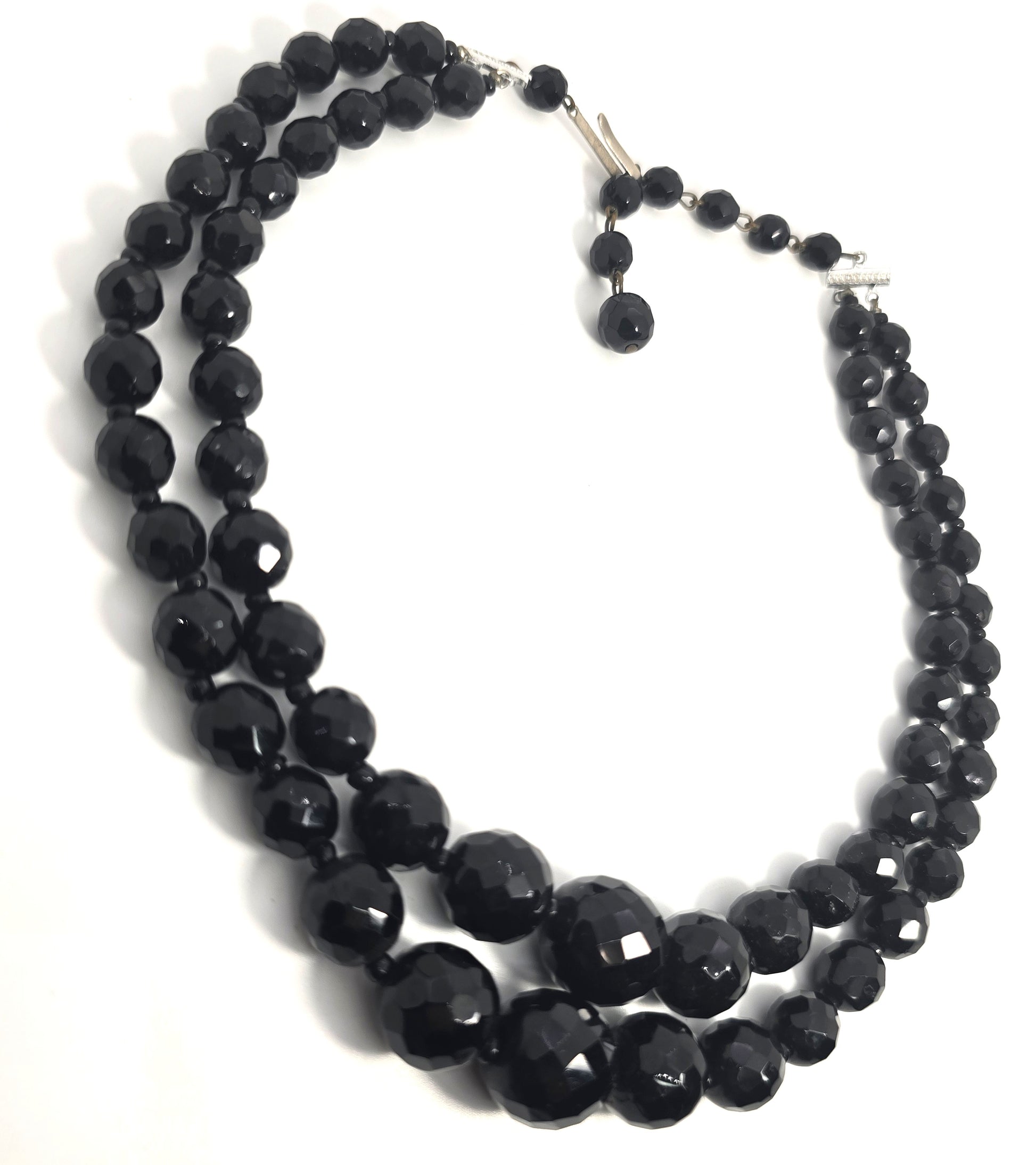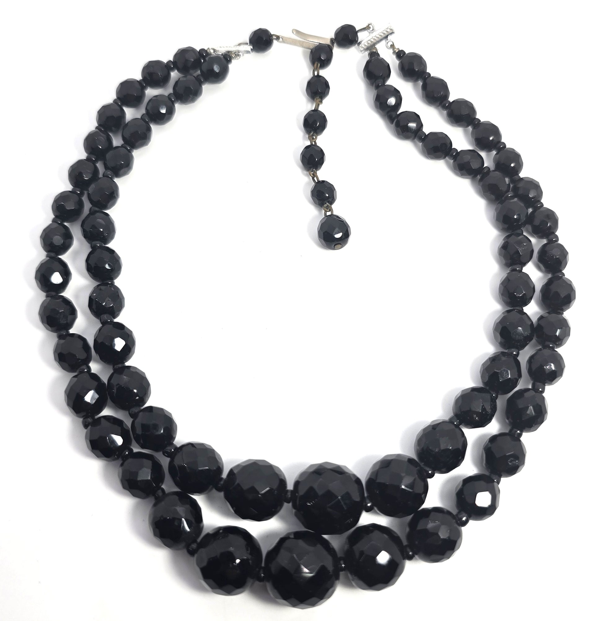 West Germany black faceted 2 strand graduated beaded vintage necklace