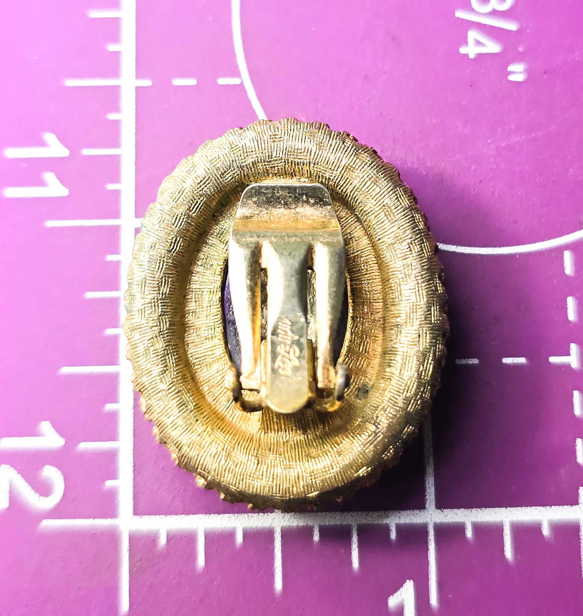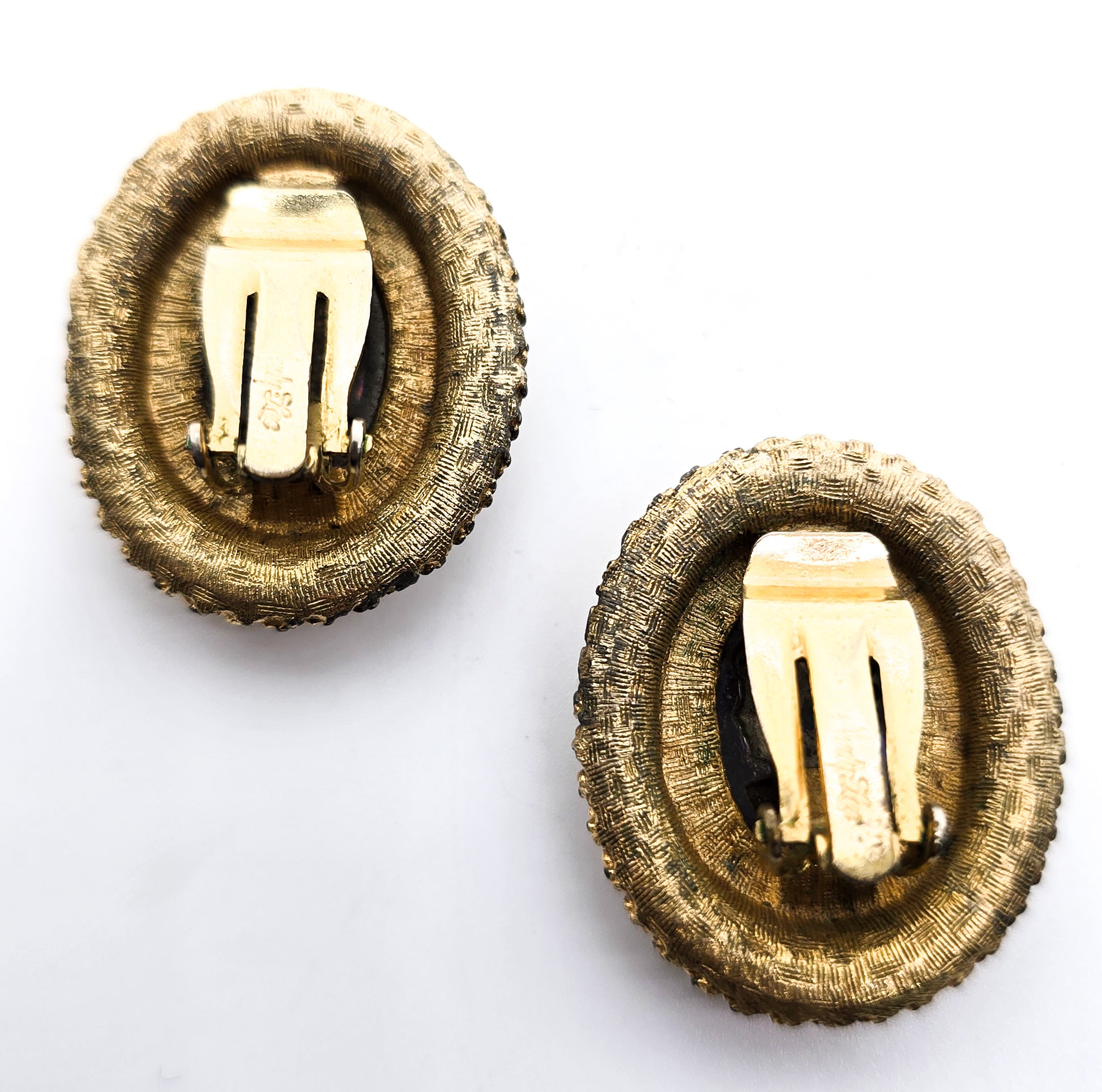 Judy Lee oil slick cameo aurora borealis vintage rhinestone clip on earrings