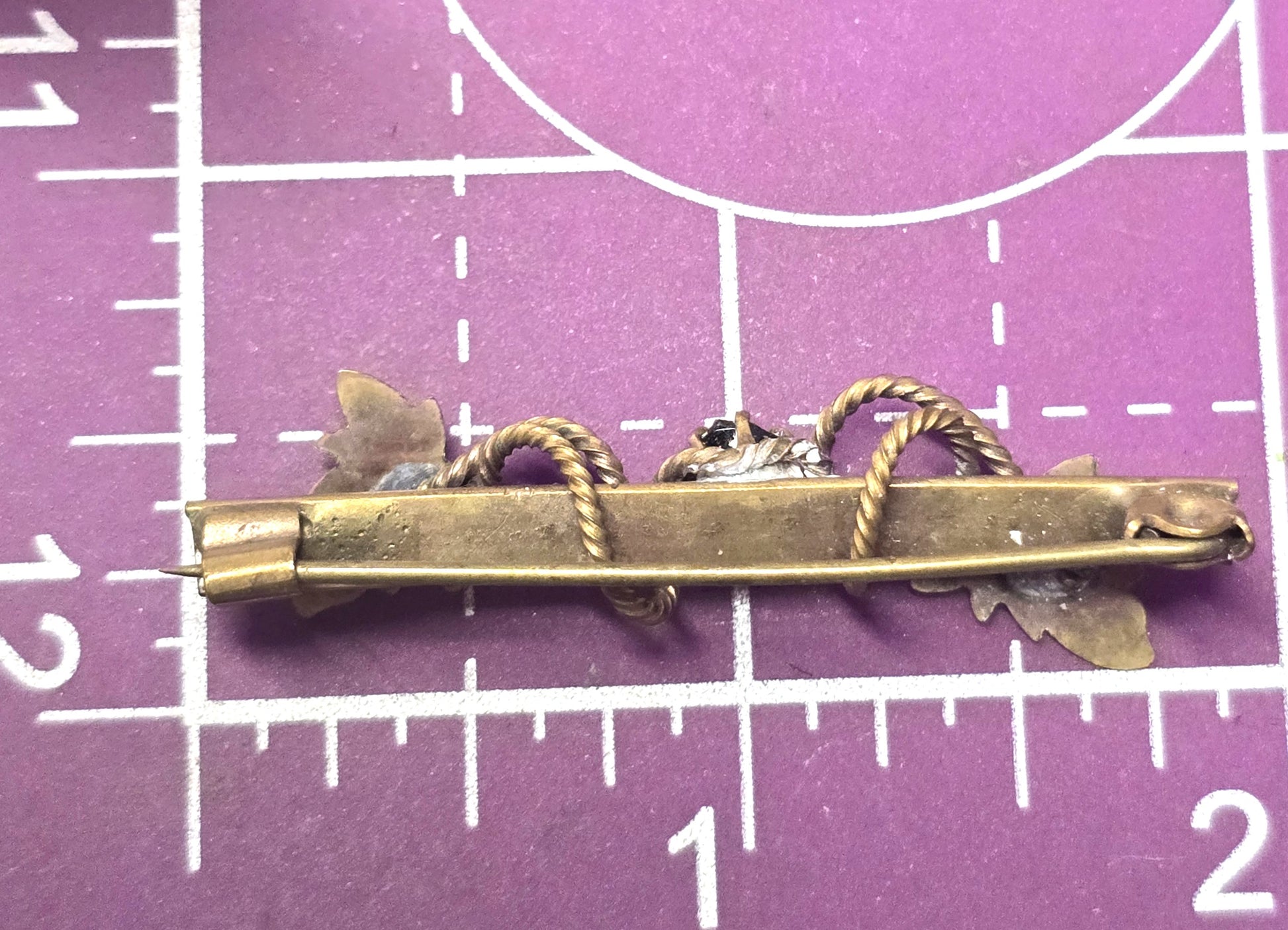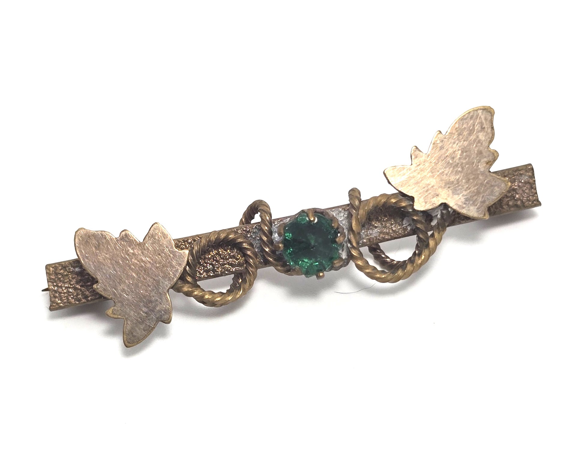 Victorian antique green paste nature gold filled leaf vintage bar pin brooch