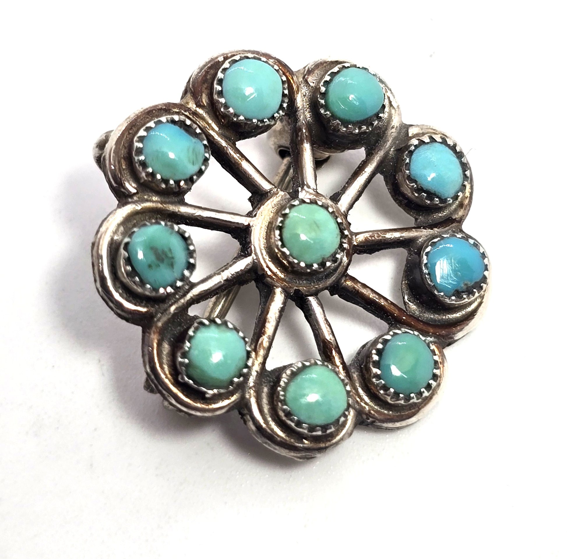 Zuni Snake Eyes petite point turquoise Native American Sterling Silver pendant brooch